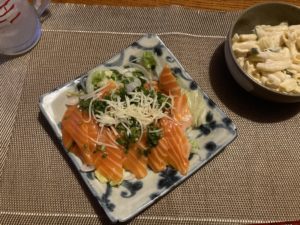 2021年10月21日blogyoko いつまでたっても 昨夜は少しだけ早くジムを終えてスーパーへ。 シニアデーは鍋のタレや冷凍食品の買い溜め だけのつもりがお刺身が超安くなています。 天候が悪くて客足が伸びなかったのか? 鍋の予定がお刺身のオンパレード。 私はサーモンのカルパッチョ。 これで夕食終わればダイエットになるのに やはり足りなくて焼きそば。 いつまでたってもダイエット無理ぽいで〜す。