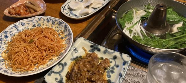 2021年12月9日blogyoko 食欲なしが 昨日は一日腰曲がりお婆さん状態です。 ジムは当分お休みして、ゆっくりです。 コルセットをつけている分、どうにか 動く事ができますが、とにかく鈍い動きです。 しゃぶ鍋で水餃子とほうれん草の夕食。 時間があるのでナポリタンも追加。 でも、相棒は抜歯で私は腰痛でナポリタンは そのまま残り、水餃子も二人で8個で終わり。 数日食べ歩きしてきた分、戻ってからは 食欲なしが続いていま〜す。