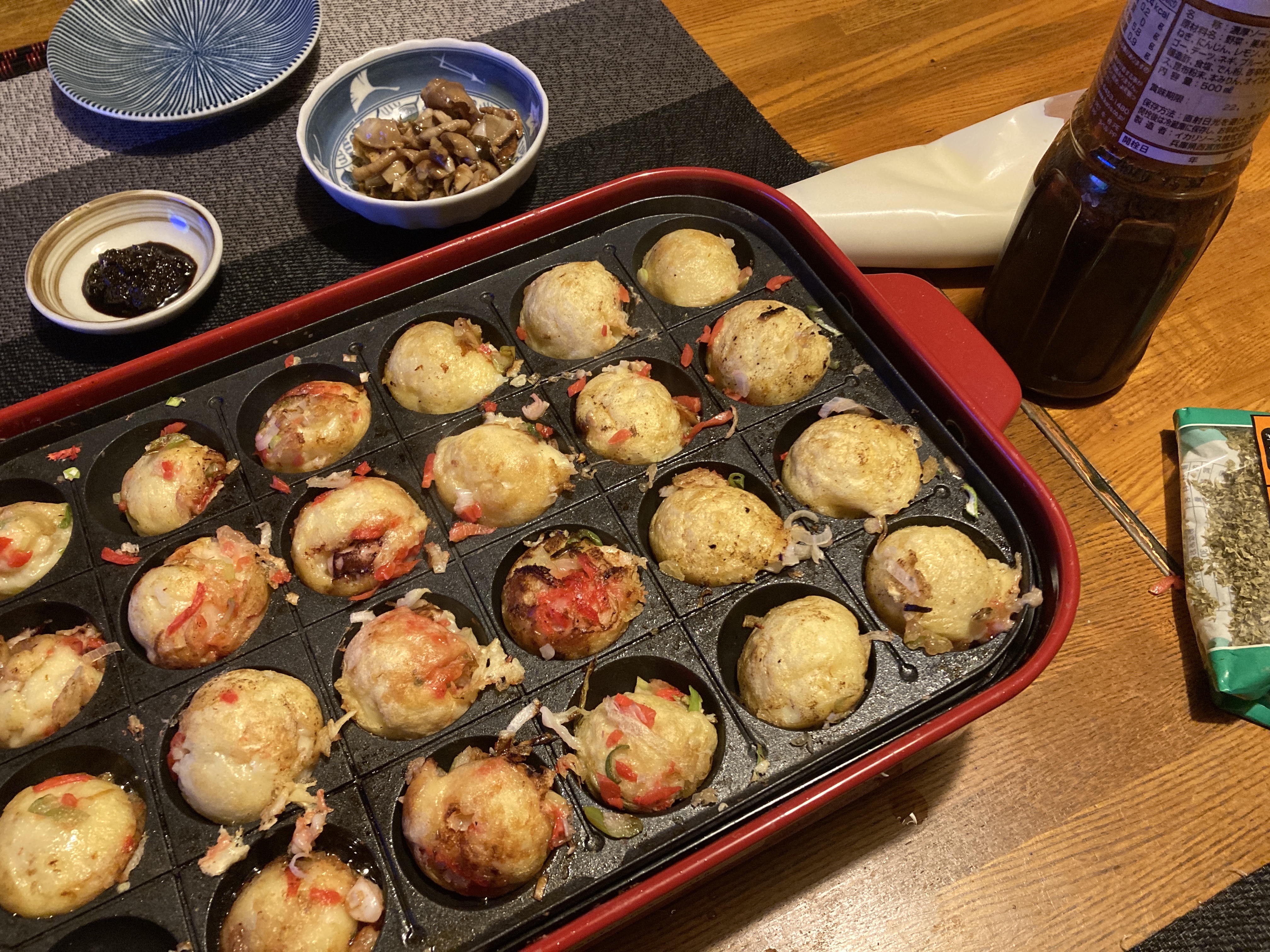 2021年12月16日blogyoko たこ焼き 前日、何気なしにたこ焼きが食べたい! とリクエストの相棒。 それを思い出し夕食に。 タコが少なかったのでゲソも追加です。 久しぶりのたこ焼き、焼き方がイマイチですが 味は最高で〜す。