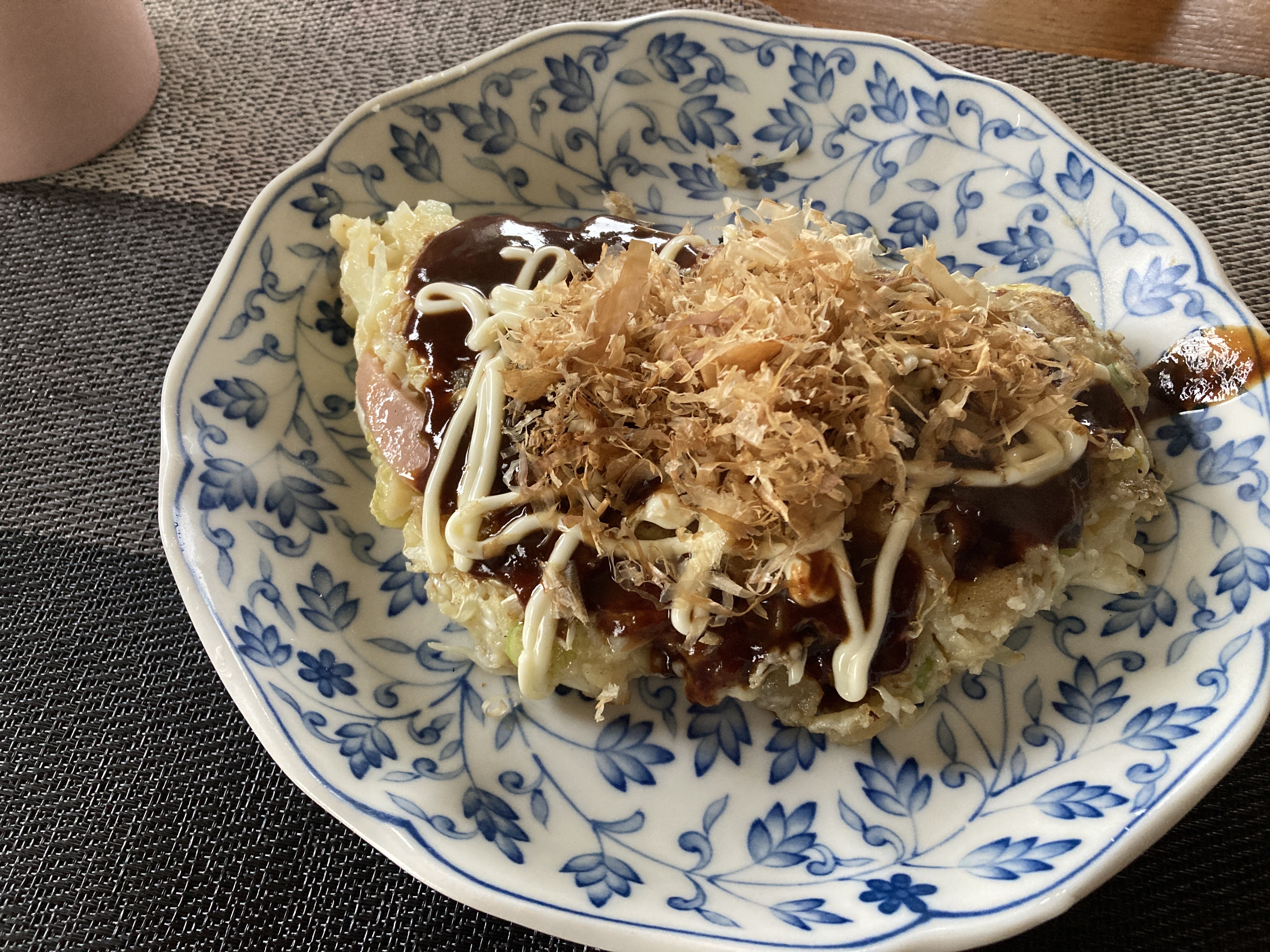 2021年12月20日blogyoko お好み焼き 朝ごはんを軽くおわしたら、日曜は二人で 数カ所での買い物です。 ダイユーエイトで偶然、野菜のNさんと遭遇。 通路で永遠とおしゃべりです。 お昼の時間もちょっと過ぎてしまい、 外食をやめて、そのまま自宅でお好み焼きです。 珍しく、相棒のリクエスト。 美味しいと食べはじめたものの、途中から 二人共飽きていま〜す。