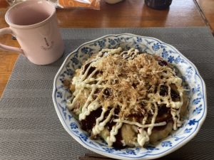 お昼はお好み焼きのリクエスト。
