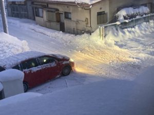 2022年2月22日blogyoko 毎日 5時前の我が家の2階からのパチリ。 幼稚園の運転手さんがライトをつけて自分の 車を入れるために、まずは手作業で雪かき。 その後、除雪機で雪かき。 毎日、暗いうちから雪かき作業始めていま〜す。