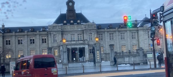2022年2月17日blogyoko もちろん 夕方5時過ぎの文翔館前です。 今週は通勤だけの運転で事務所にずっとの 予定でしたが、どうしてもオープン間近の お店の額装を用意で出かけてきました。 もちろん、運転と積み込みは相棒です。 プレオープンにご招待いただいていたのに 長時間座るのもキツイので辞退です。 あ〜、行きたかったなあ、、、。