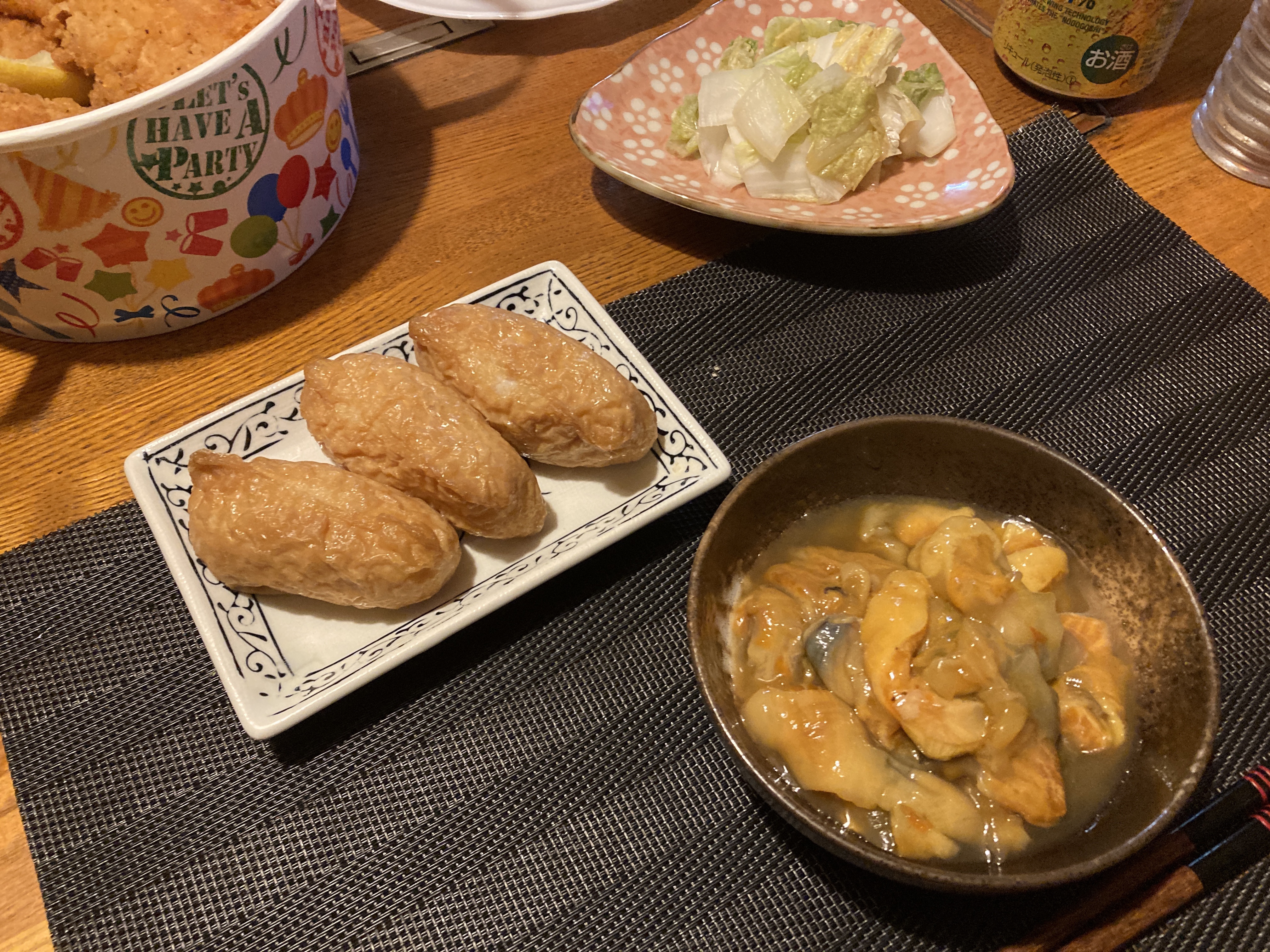 2022年3月4日blogyoko 和洋バラバラ 昨夜もジムからスーパー経由です。 前日買い忘れた仏壇のお花購入です。 ですが、それだけでは終わらず店内ウロウロ。 馴染みの定員さんから、明日も来てね! と言われてしまいました。 買い物しない宣言は完全にどこへの状況です。 ホヤがあったのでホヤ酢と残りのいなり。 お雛祭り用でしょうか?チキンも購入。 ついでにフランスパンも。 我が家の夕食は和洋バラバラで〜す。