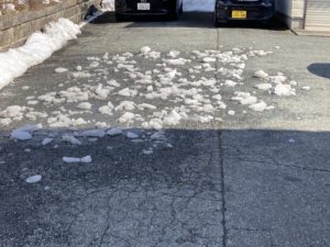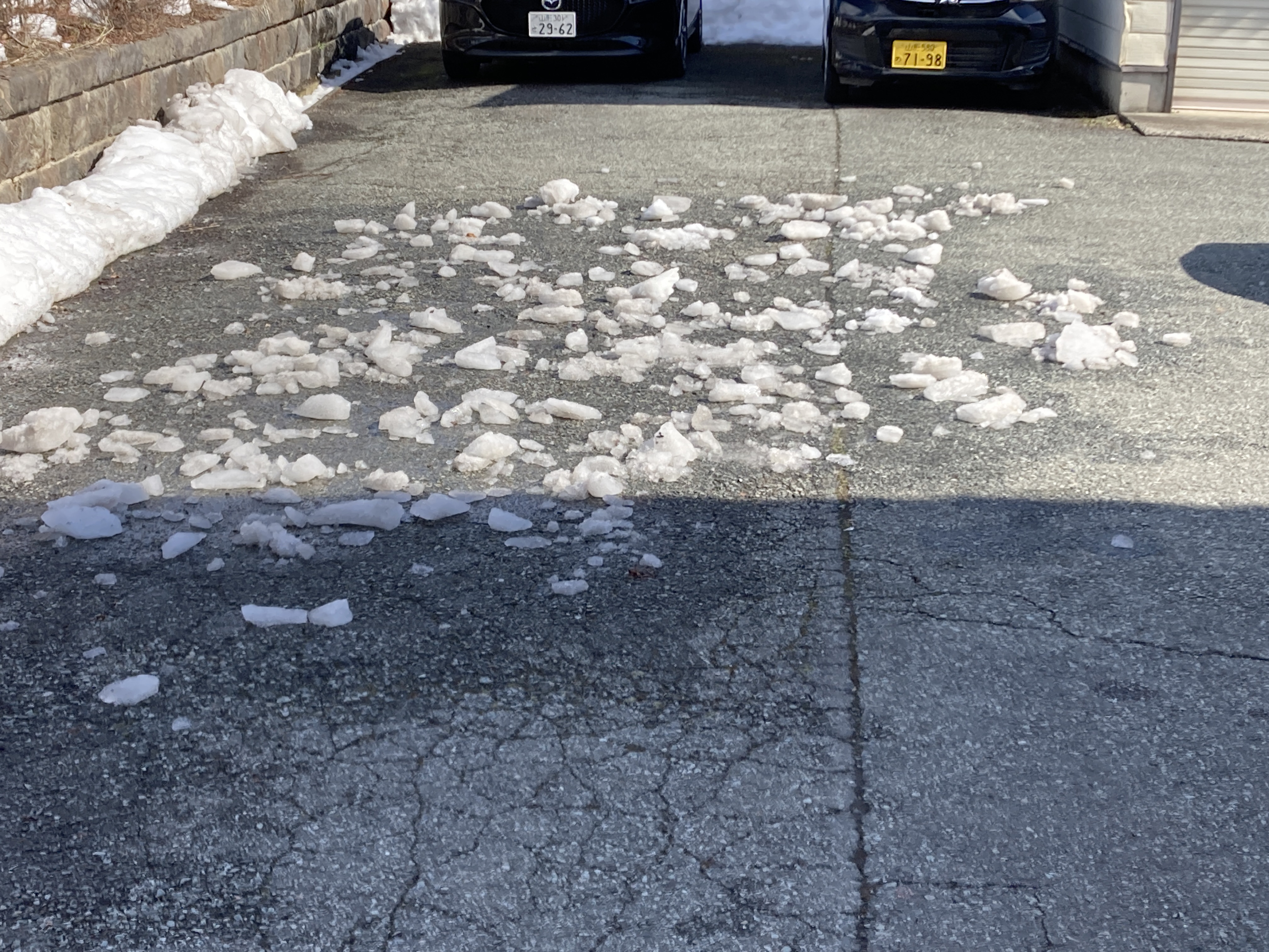 2022年3月4日blogyoko 氷割り お昼を食べて事務所に戻ったら青空にも なってきたしで二人で入り口部分の氷割り。 お腹いっぱいなので腹ごなし兼ねてです。 建物で日陰になるので、氷も超硬いですが 途中からスタッフも混じっていっきに! 通路の氷、全てなくなりました。 あとはお天気次第で自然に溶けると思うので 少しづづで〜す。