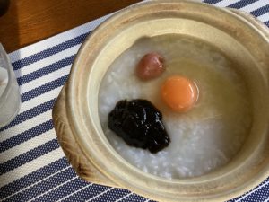 2022年3月17日blogyoko 白粥の催促 今朝も白粥、梅干しに海苔、生卵です。 明日も白粥の催促です。 私の分は大根飯のキムチ味です。 二人ともサラサラと食べられ、食後の片付けも スムーズで〜す。