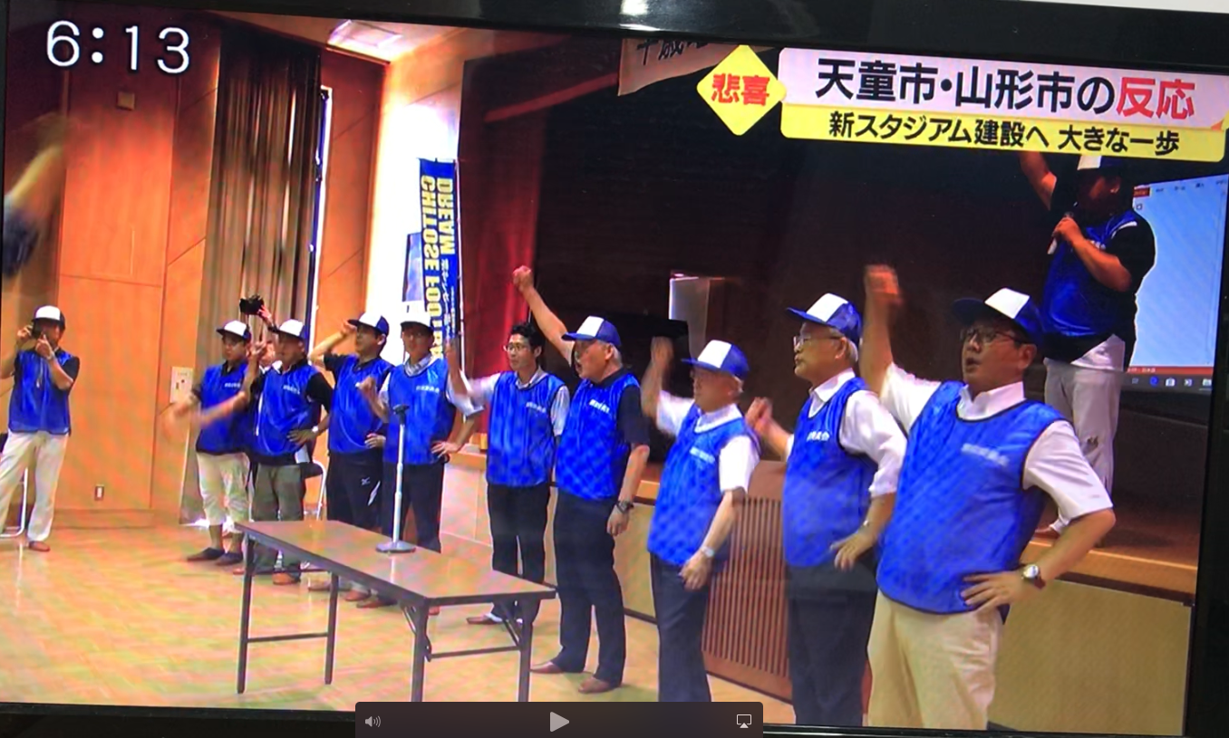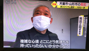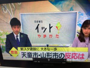 2022年3月16日blogyoko 取材 昨日は各テレビ局や新聞社からの電話が 頻繁です。 午後から取材もありました。 放送が6時過ぎと聞いていましたが、私は 見られなかったので相棒が帰宅してから 見せてもらいました。 モンテの新スタジアムの場所が決定の 内容です。 相棒がそれに対して取材されました。 これで山形市は消えました。 残念で〜す。