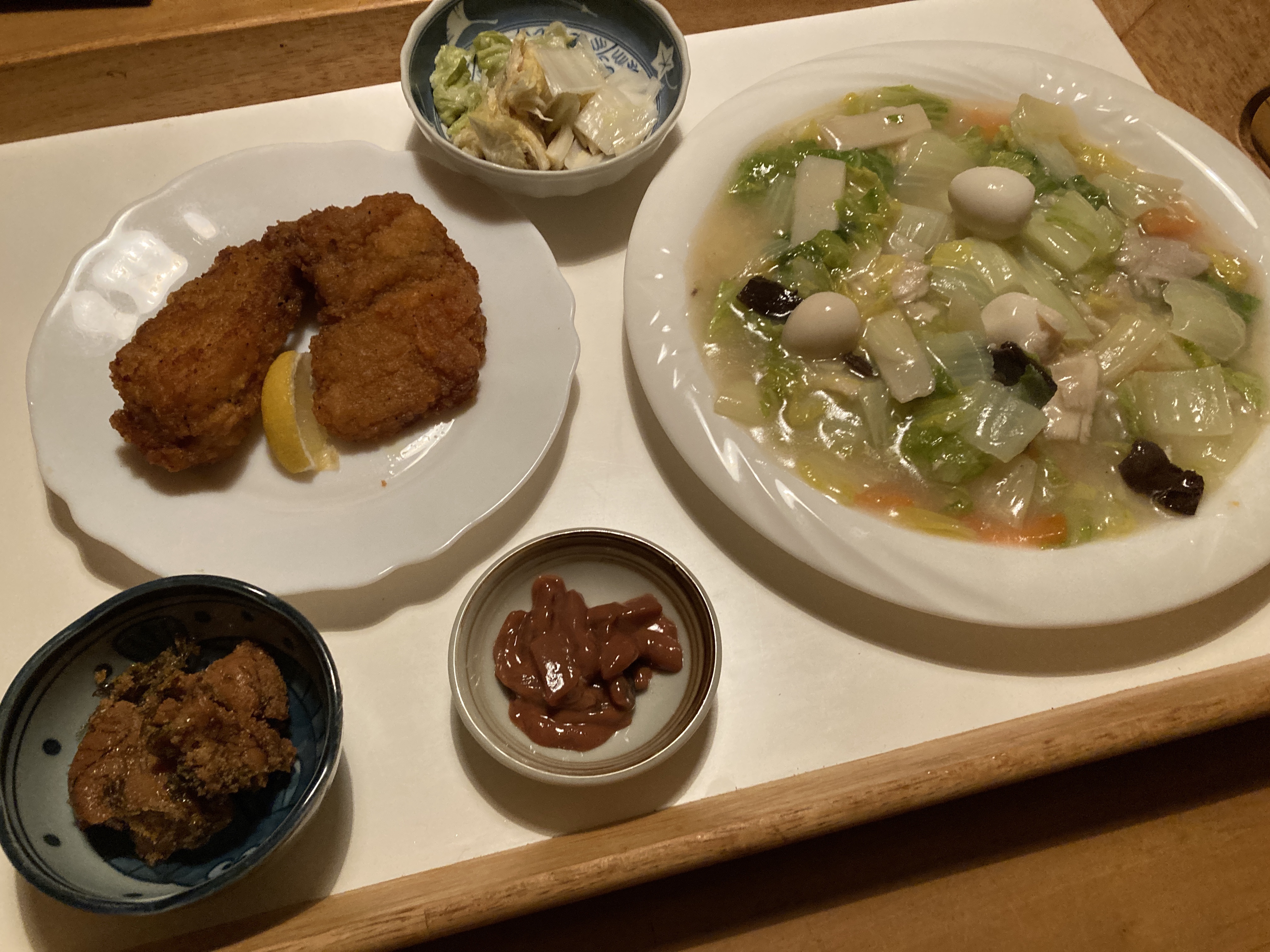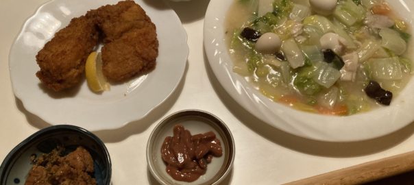 2022年3月10日blogyoko 2階の方が 相棒の帰りが遅かったので八宝菜とチキンだけ。 腰痛が治ってからも台所で夕食をとって いましたが、重い物を持っても腰への負担が なくなり久しぶりに2階での夕食です。 我が家は2階にアルコール専用の冷蔵庫が あるので夕食時は2階の方が楽チンなんで〜す。