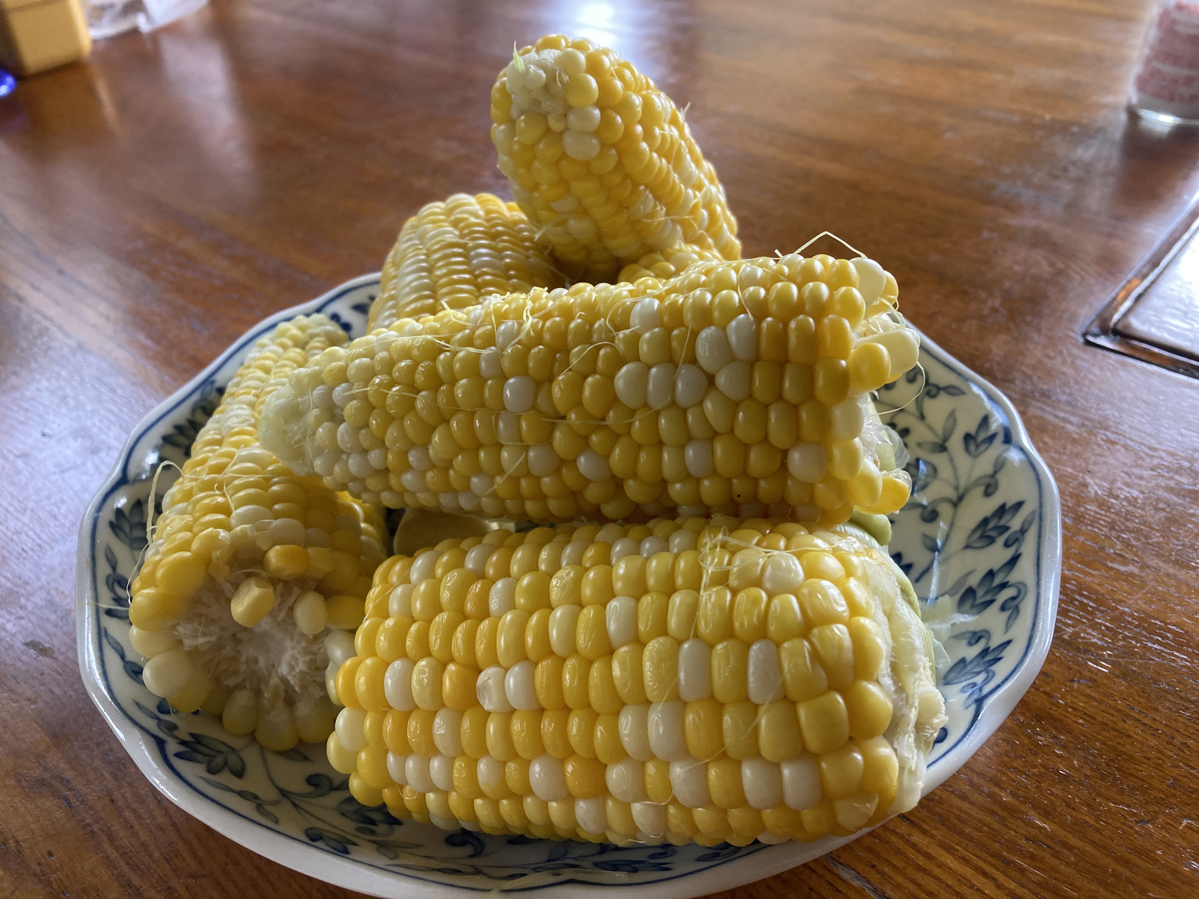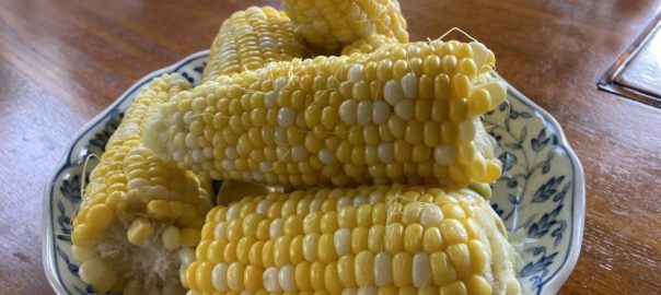 2022年6月20日blogyoko とうもろこし とうもろこし大好きな相棒に少し早めに 畑から戻って茹でていたら香りがしたのか 相棒お昼に食べたい!と。 でも、収穫したレタスやエンドウ豆が たくさんあるのでサラダソーメン (こんにゃく麺)を用意していたので、 まずはそれを食べていましたが、少ししたら 我慢できずにとうもろこしガブリで〜す。