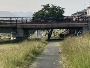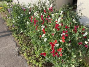 2022年6月20日blogyoko 土曜の朝は スポセンの紫陽花が小ぶりながら色つきが 濃くなってきました。 土曜の朝は北イオン方面へ。 なんの花かと近づいたらえんどう豆です。 こんな色の花をつけているのは初めて。 橋桁の下から新幹線。 土手の清掃、ご苦労様で〜す。