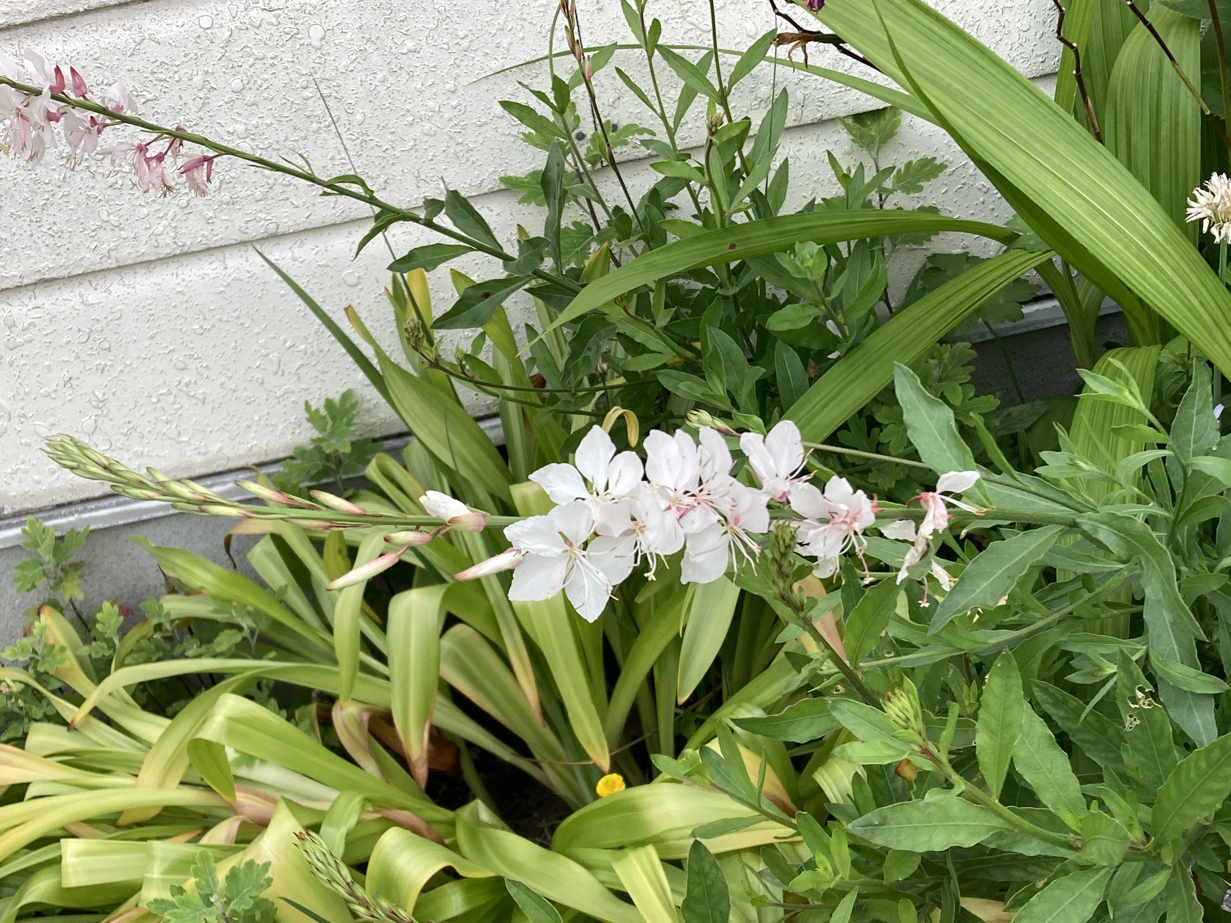2022年6月14日blogyoko 自然消滅 我が家の小さな庭の白蝶草が咲きはじめました。 いつも相棒が嫌いで新芽のうちに摘み取られる この花ですが、今回は阻止し咲かせました。 名前が出てきませんが紫蘭の葉で見え隠れ。 この花が最近少なくなっています。 少し整理しないと自然消滅するかもと 心配で〜す。