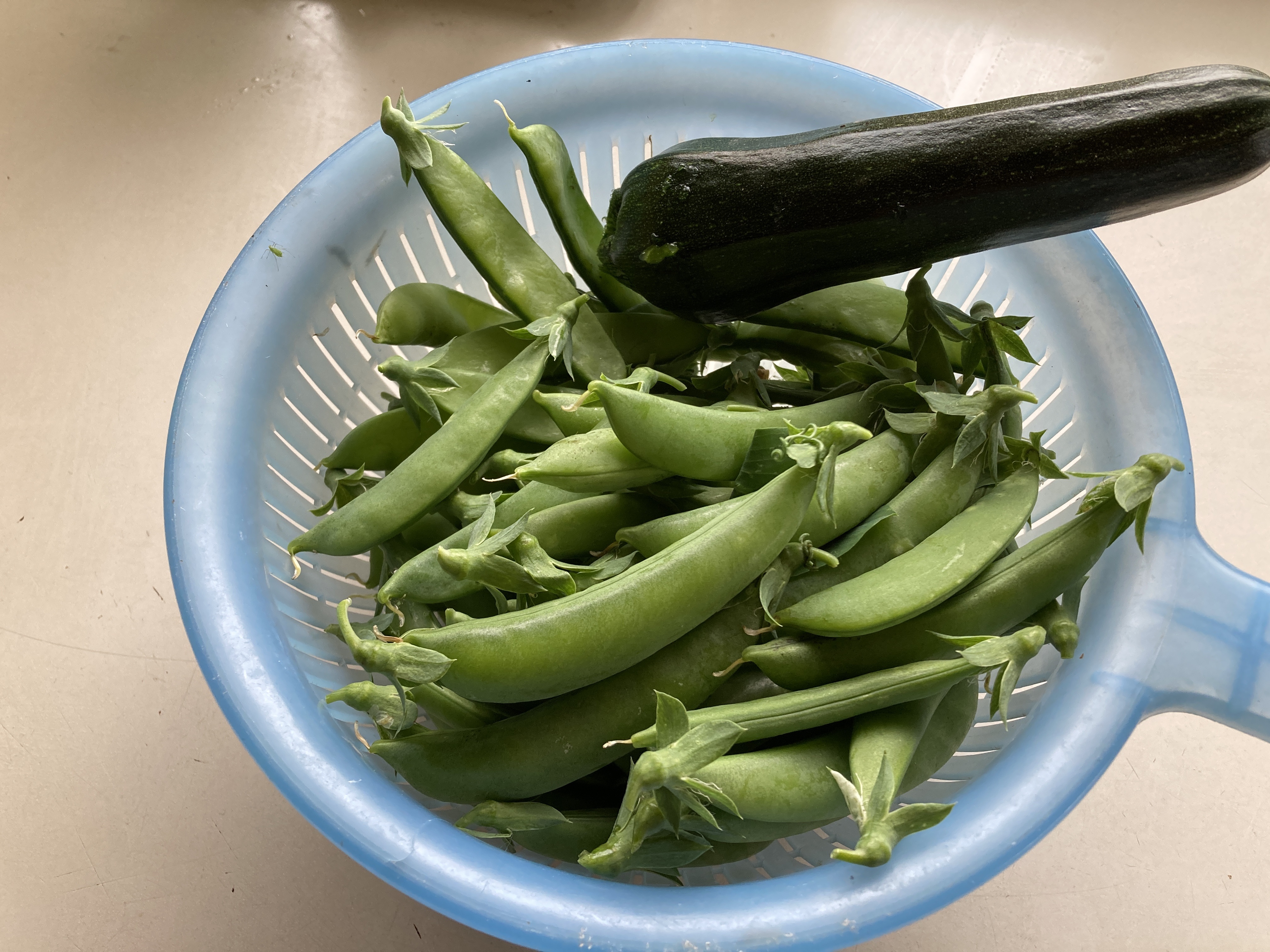 2022年6月14日blogyoko 今夜のつまみ 散歩のコース変更したのは昨夜の風が 気になりはじめたからです。 すごい風だったので畑が心配になりました。 畑へ行く通路は小さな子の為の落書きが。 雨が降ると綺麗に消されます。 心配した事がやはりおきました。 スナップエンドウの柵が倒れています。 相棒が杭を打って補強している間に 私は収穫です。 今夜のつまみになる予定で〜す。