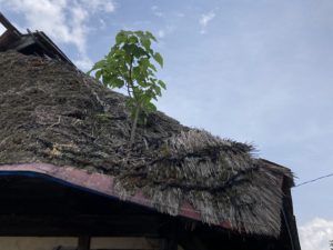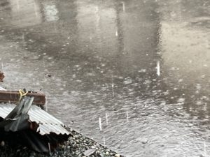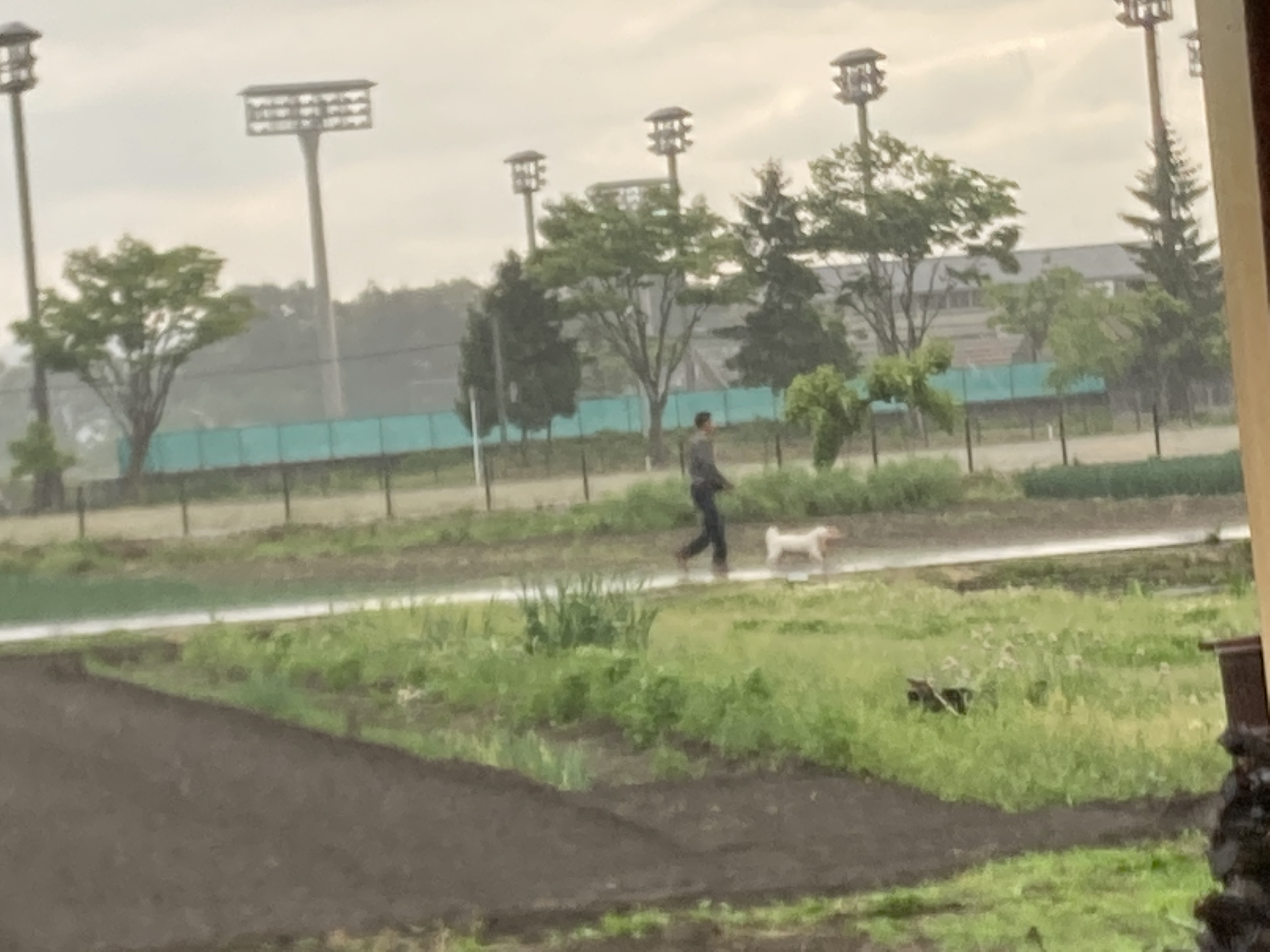 2022年6月13日blogyoko 畑中止 家に戻ってから苗を植えに畑へ。 私は相変わらず雑草取りです。 まだ半分も終わらないうちに雨が。 犬を連れた散歩中の方は濡れても歩いて います。 家まで数分でも、かなりの大雨なので ずぶ濡れになるので私たちは小屋で 雨やどり。 雨が収まるまで1時間ぐらいは収穫した 野菜の下処理で時間潰し。 やっと小降りになったけど畑中止で〜す。