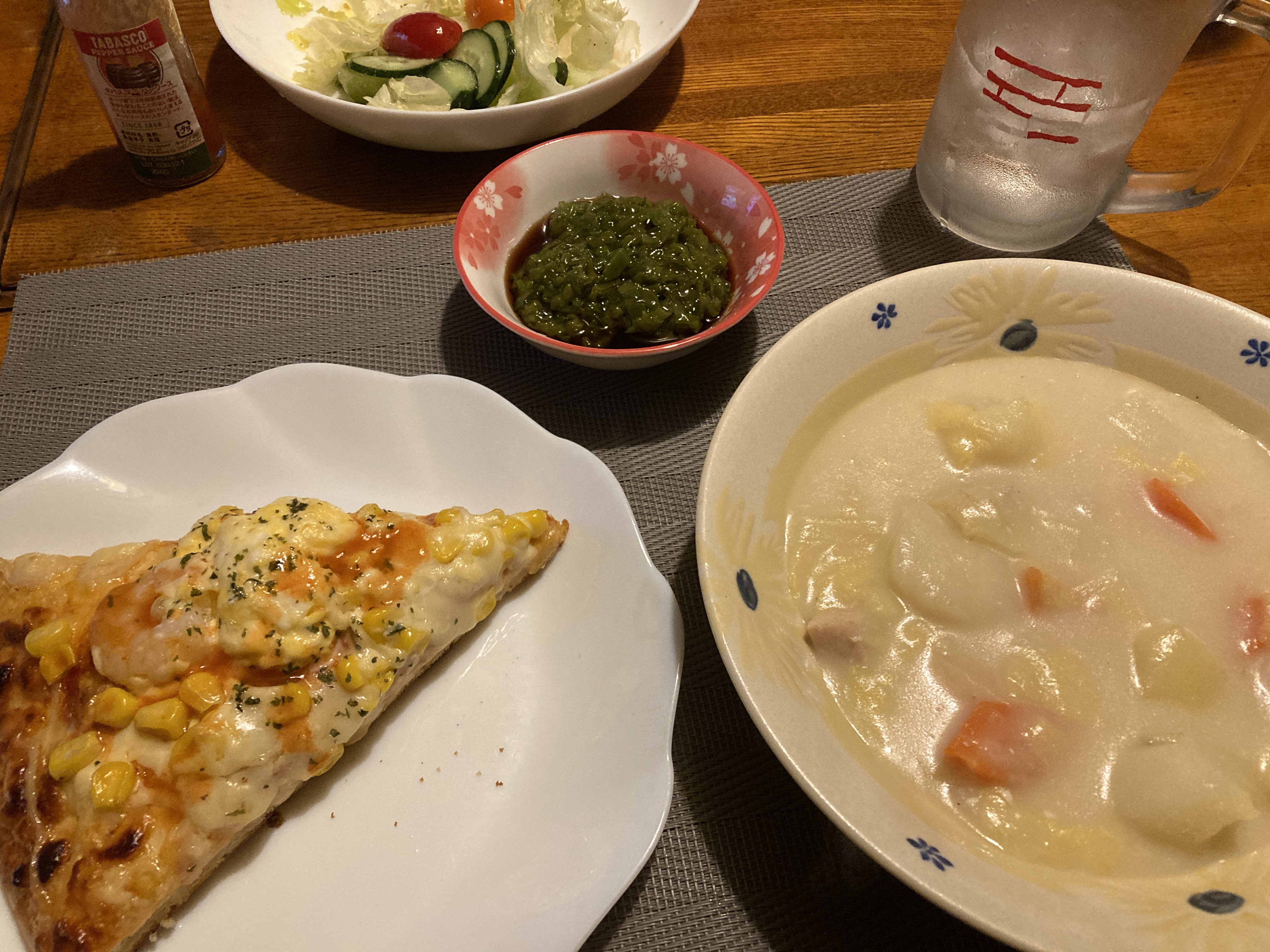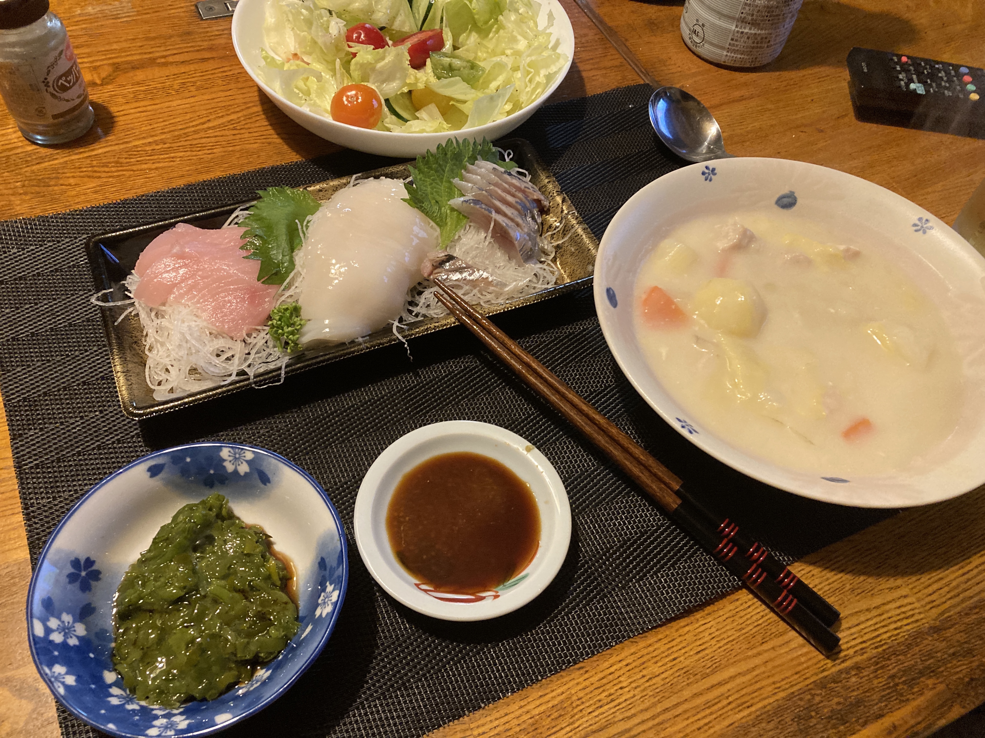 2022年6月8日blogyoko 5分 出張先から戻る相棒のお迎えの時間まで、 ジムでトレーニング&マッサージ。 その後、ヨークでチャージ&買い物。 一緒の帰宅なのでパックのままのお刺身を 出して、まずはお疲れ様。 朝の時間にシチューは用意していたので 温めただけ。 私はお刺身ではなくピザ。 夕食の準備、5分で〜す。