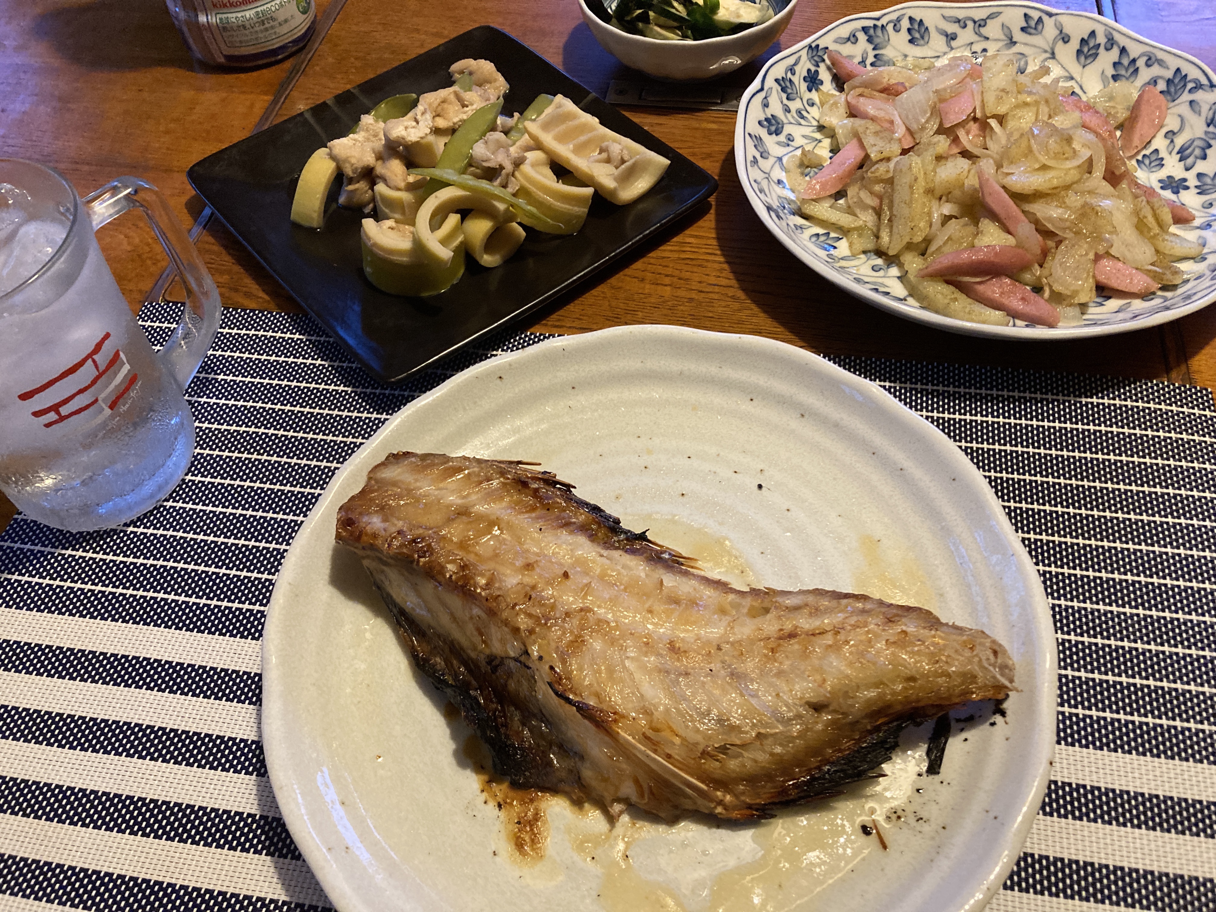 2022年6月27日blogyoko 私は 夕食は杜の市場で購入のキンメと道の駅で 購入の淡竹の煮物&相棒の好きなジャガイモと 玉ねぎ、ソーセージのカレー炒め。 ホテルのおいしい食事より、やはり自分好みの 我が家の食事が美味しいようです。 ですが、私は料理もなし、片付けもなしで のんびり食べて泊まれるホテルが 安らぎま〜す。