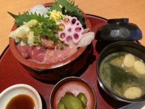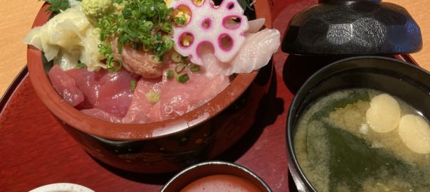 2022年6月27日blogyoko 半分使用 県民割のクーポンが使用できるお店で ランチです。 相棒は4種のマグロ海鮮丼。 炭火焼の豚丼。 二人共ご飯は少量にしてもらいました。 このお店では水が出てきません。 不思議になってスタッフに聞いたら セルフのドリンクの飲み放題でした。 ウーロン茶で一息ついてクーポン半分 使用で〜す。
