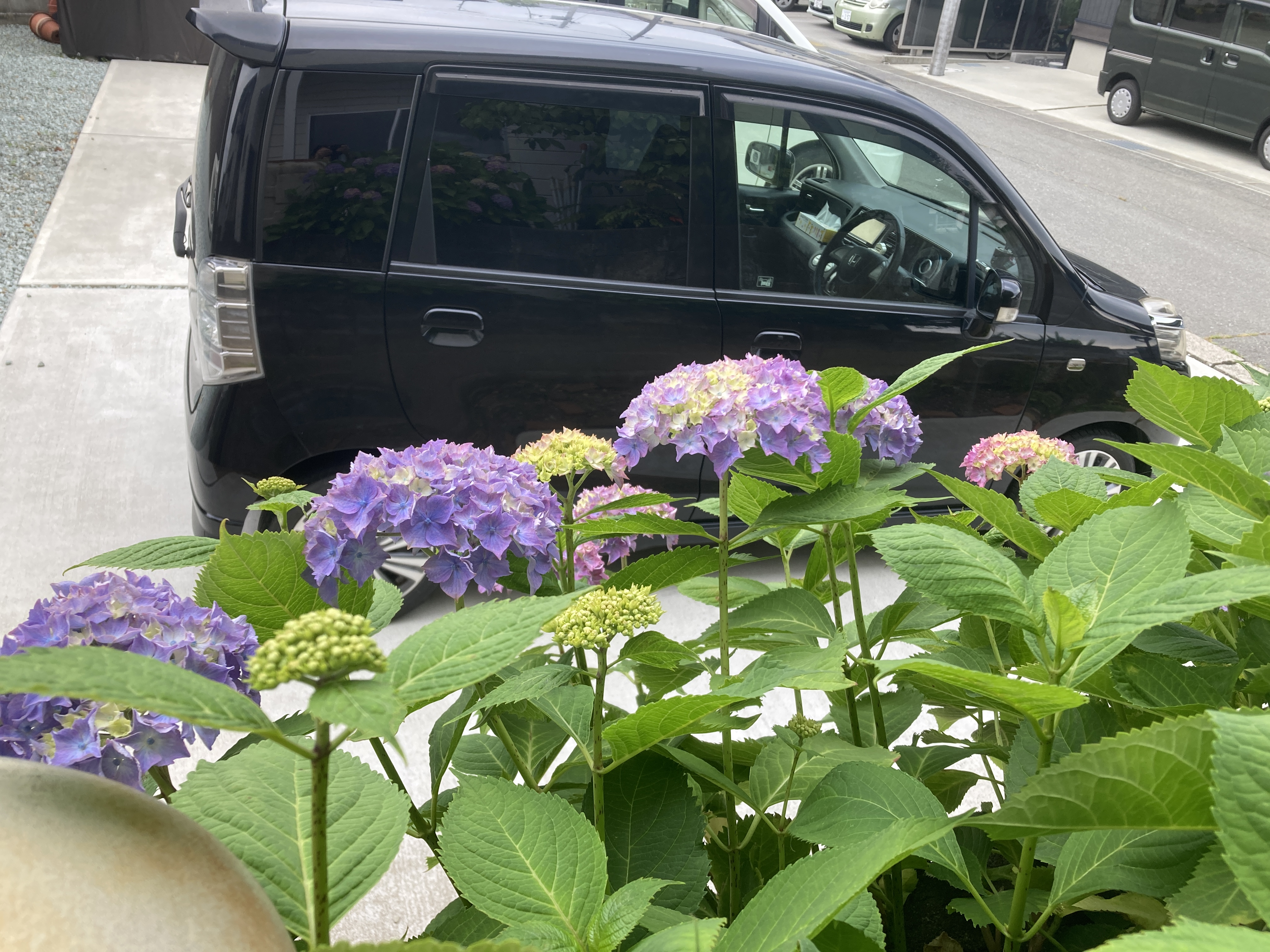 2022年6月23日blogyoko お隣さん用 我が家の紫陽花がやっと咲いてきました。 でも、隣から見える我が家の紫陽花は ちゃんと色つき、たくさん咲いています。 お隣さん用の紫陽花になっていま〜す。