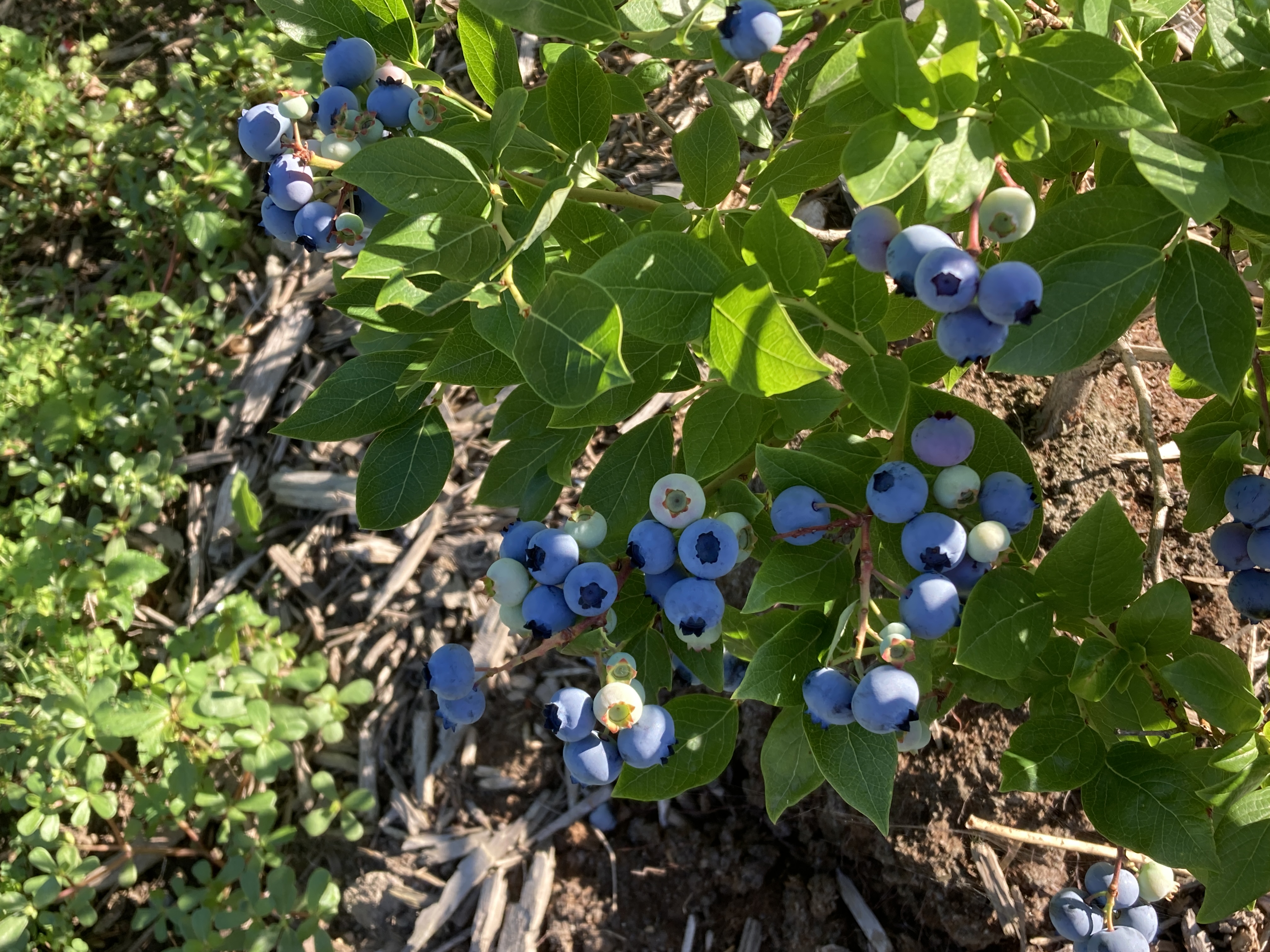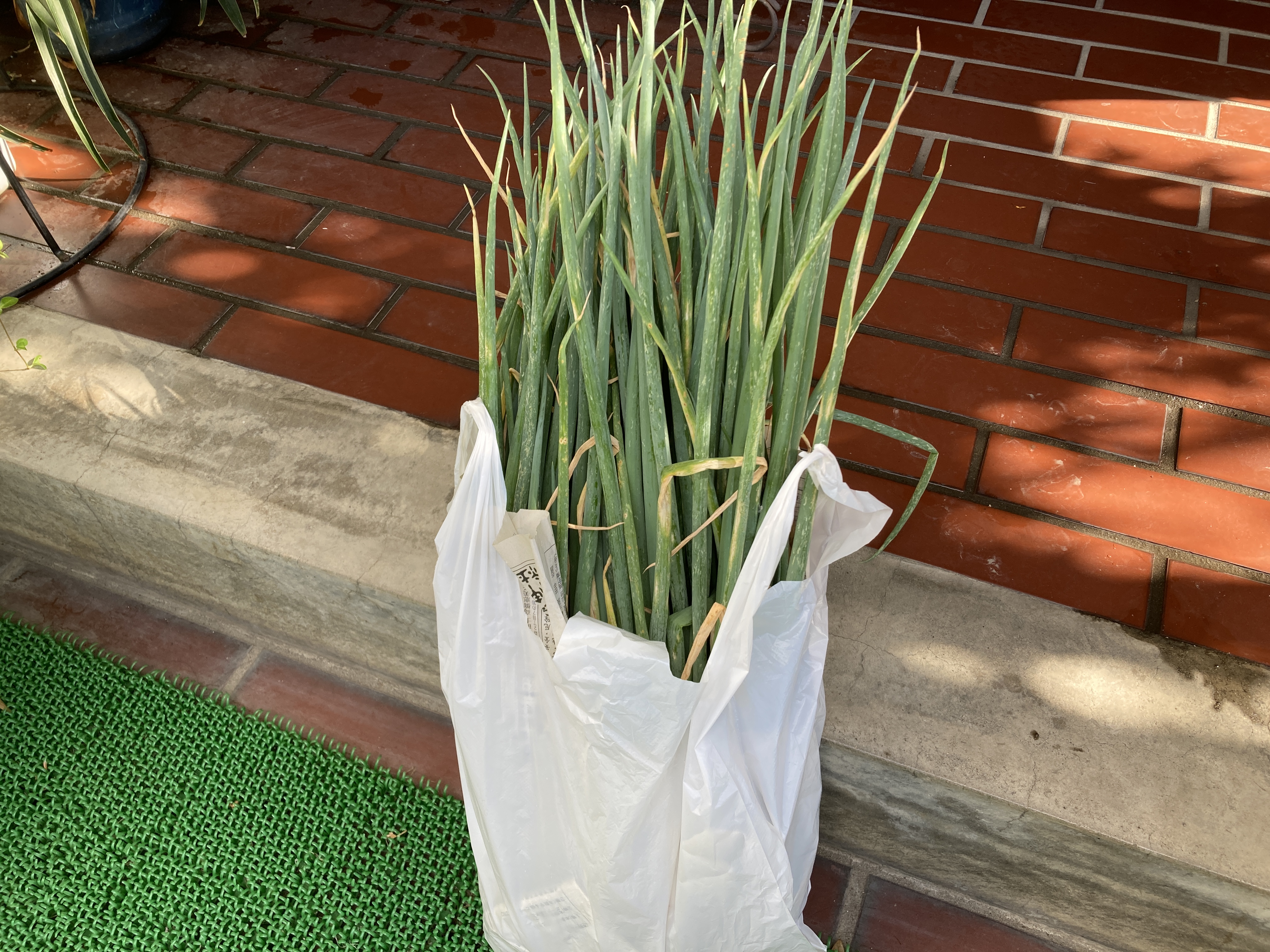 きゅうりや茄子を手に持てるだけ収穫で〜す。
