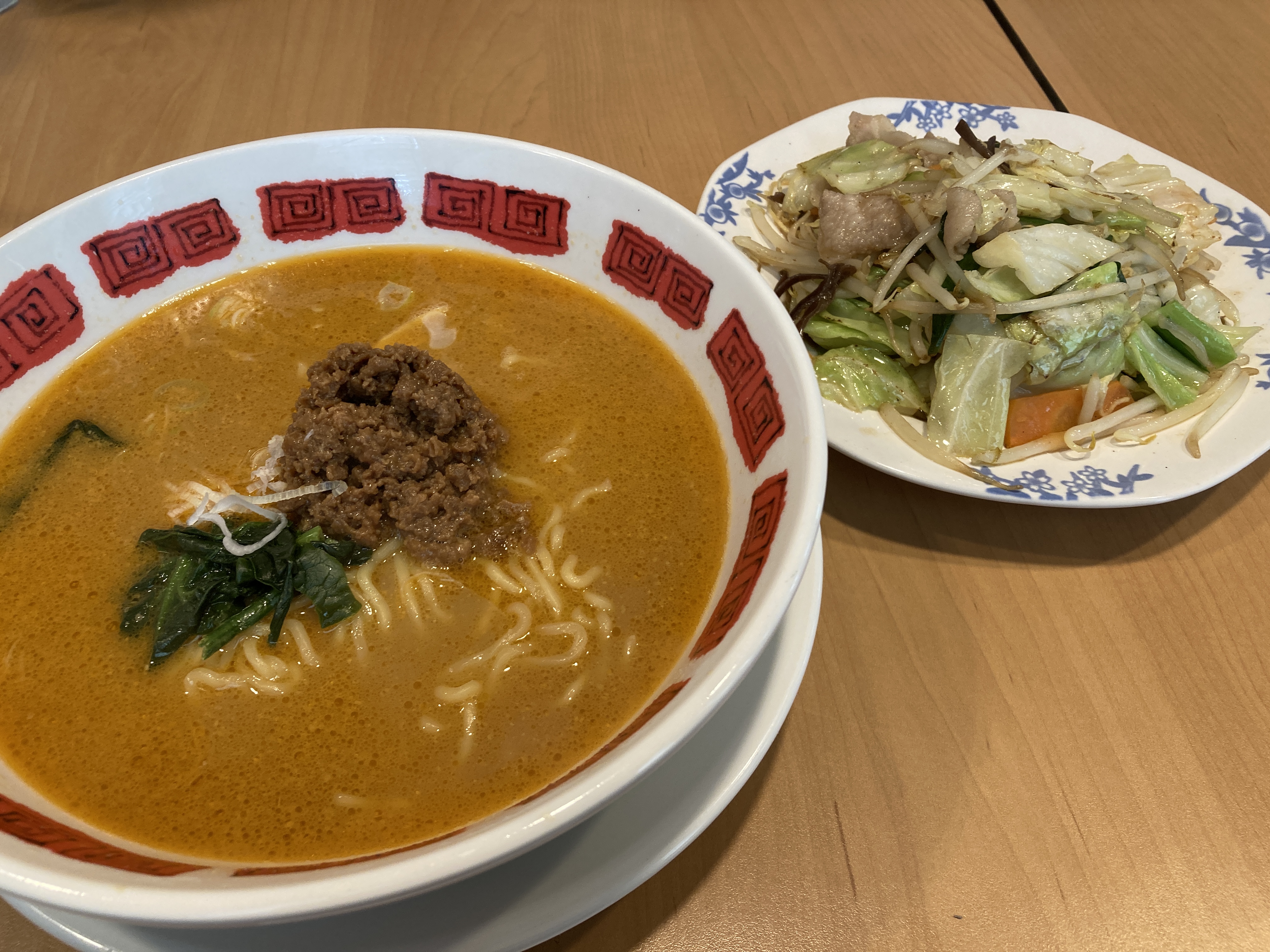 お昼はバーミヤンで坦々麺と野菜炒め。