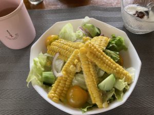 2022年7月11日blogyoko 畑へ 生野菜ととうもろこしのサラダを食べたら 午前中にジャガイモ掘りとスナップエンドウ 等の柵をはずしに畑へ。 じゃがいも、まだ早いようです。 少しだけ掘って中止。 柵をはずした後は、スナップエンドウの 取り残しの収穫です。 インゲンがやっとです。 あっという間に12時過ぎです。 暑いわけで〜す。