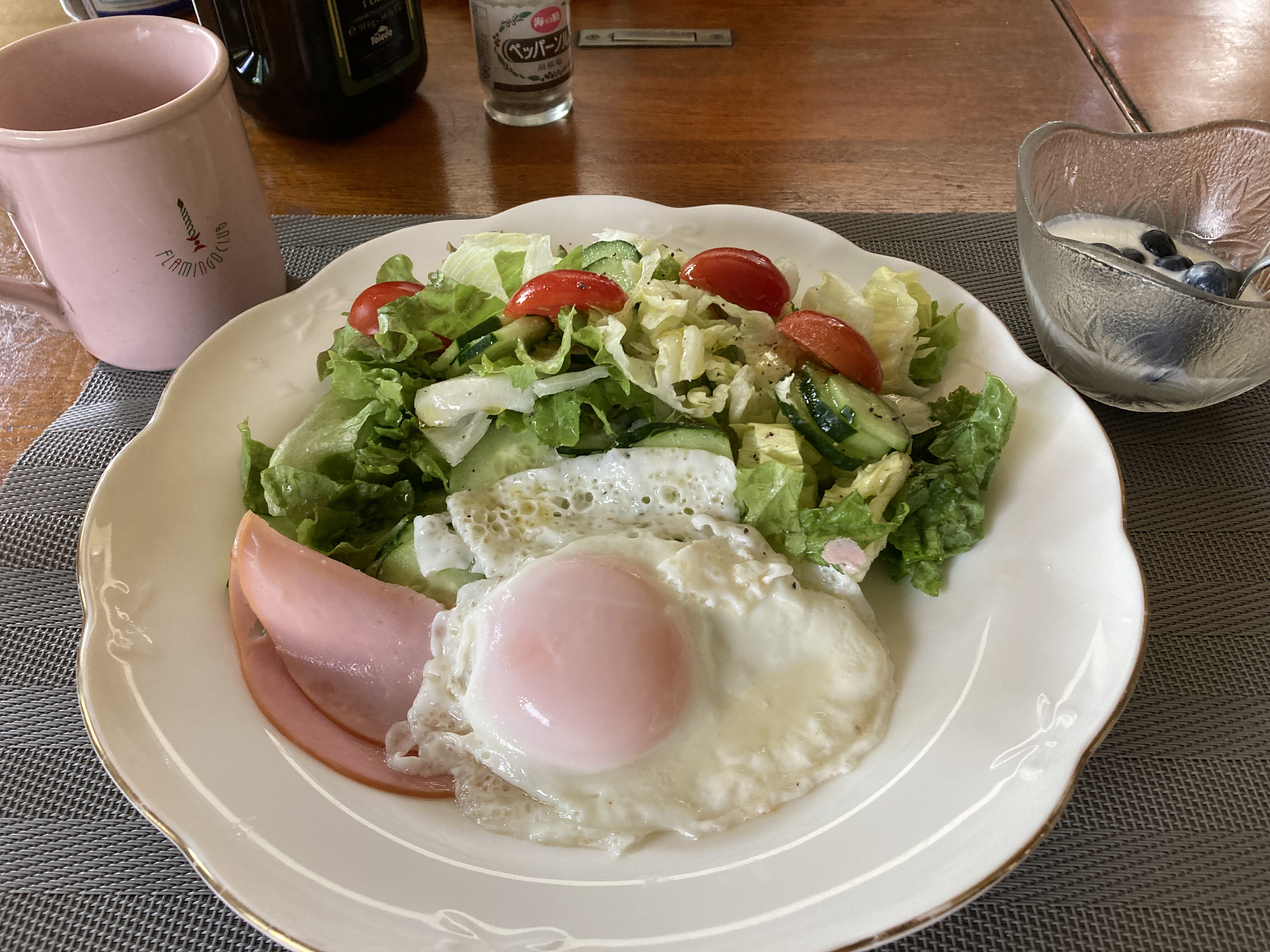 散歩から戻ったら、朝食。
