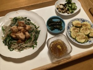 2022年7月20日blogyoko お腹が 何時もより早い7時過ぎに帰宅しましたが、 テレビが面白く夕食の準備がおろそかに なっています。 いつもことですが。 朝から味付けし下準備していた唐揚げと ズッキーニの素揚げにカレー粉と塩をかけて、 後はところてんのシンプルな内容です。 でもこれだけで相棒はお腹いっぱい! ダイエットしているからお腹が小さくなって いるようで〜す。