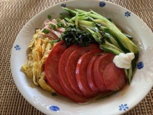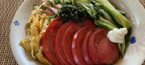 2022年7月25日blogyoko さっぱりが 朝食が終わったら私は第2のお花畑の雑草取り。 2時間ぐらいかかって終了です。 その間、日陰で休憩しながら2度の給水。 熱中症対策です。 大玉のトマトも収穫できるようになったので お昼はトマト中心の冷やし中華風ソーメン。 相棒はこんにゃく麺を続けています。 さっぱりが一番で〜す。