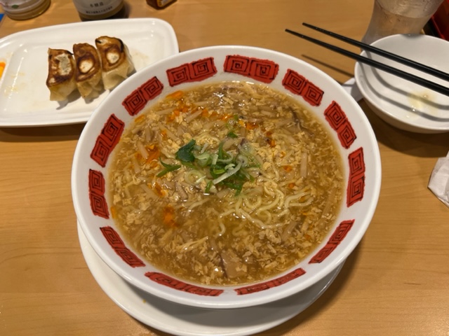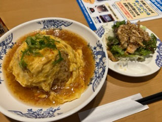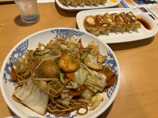 2022年7月22日blogyoko これからが スポセンから帰るとスタッフと食事に。 ダイエット中の相棒は小さな皿のよだれ鶏のみ。 天津飯はY君。 サンラータンメンはN君。 海鮮上海焼きそばは私。 あとは皆んなで餃子を。 お腹がいっぱいでこれからが恐怖で〜す。
