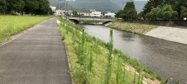 2022年7月21日blogyoko どこに行っても 朝散歩開始。 農家さんの花が綺麗です。 流通団地の舗装された土手を歩いています。 反対側は我が家の梅ジャムになる梅の木が あります。 農道を歩いて、とあるお店の脇です。 スプリンクラーが雑草に埋もれています。 どこに行っても雑草との戦いですね。