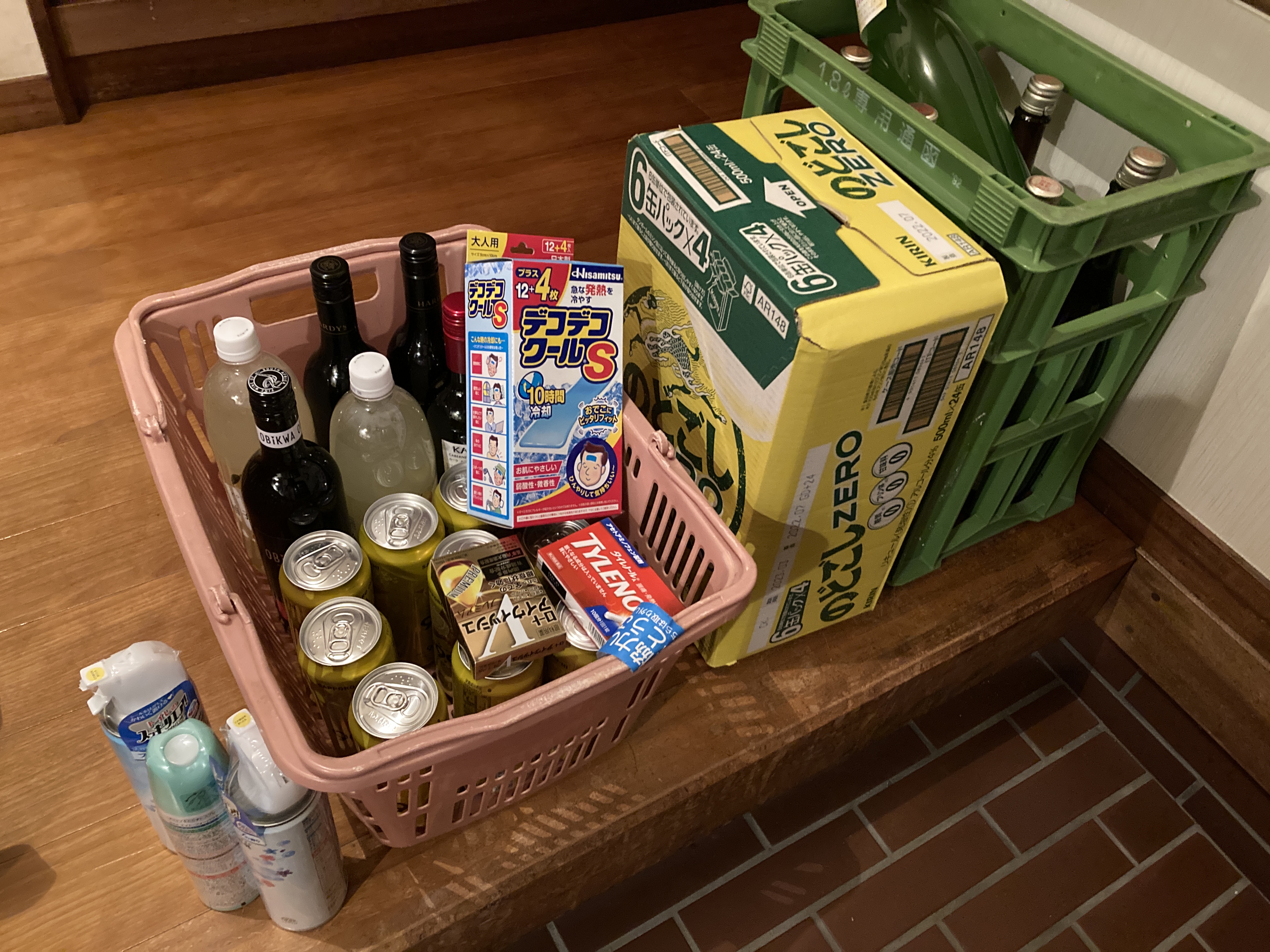 2022年9月21日blogyoko 20日は 台風は何事もなく過ぎてしまいました。 20日は買い物が多いのでジムへ行かずに 事務所から各お店まわり。 まだ頂き物のお酒やビールが床の間に ドーンなので今月はいつもより少なめ。 そして、コロナ感染がそこまで来ているので いつ熱が出てもいいように解熱剤やおでこ用 熱さまし等の薬を購入で〜す。
