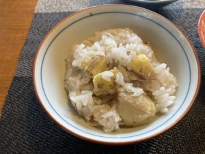 2022年10月17日blogyoko 栗ご飯 いつもは1週間ぶりの炊きたてご飯は土曜日 ですが、たまたま栗をいただいたので月曜に 栗ご飯にしました。 栗がゴロゴロです。 3合炊いたので、あとはスタッフ行きで〜す。