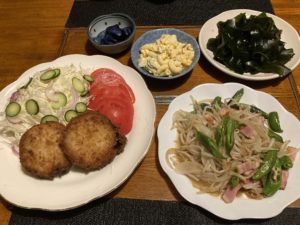 2022年10月18日blogyoko リメイクして 土日とお休みしたので昨夜はジムへ。 最近は週3程度になっています。 前日に下ごしらえしてあるものは少しづつ 食べることにして夕食はワカメの刺身と メンチカツ。 残ったらリメイクして私のお弁当で〜す。
