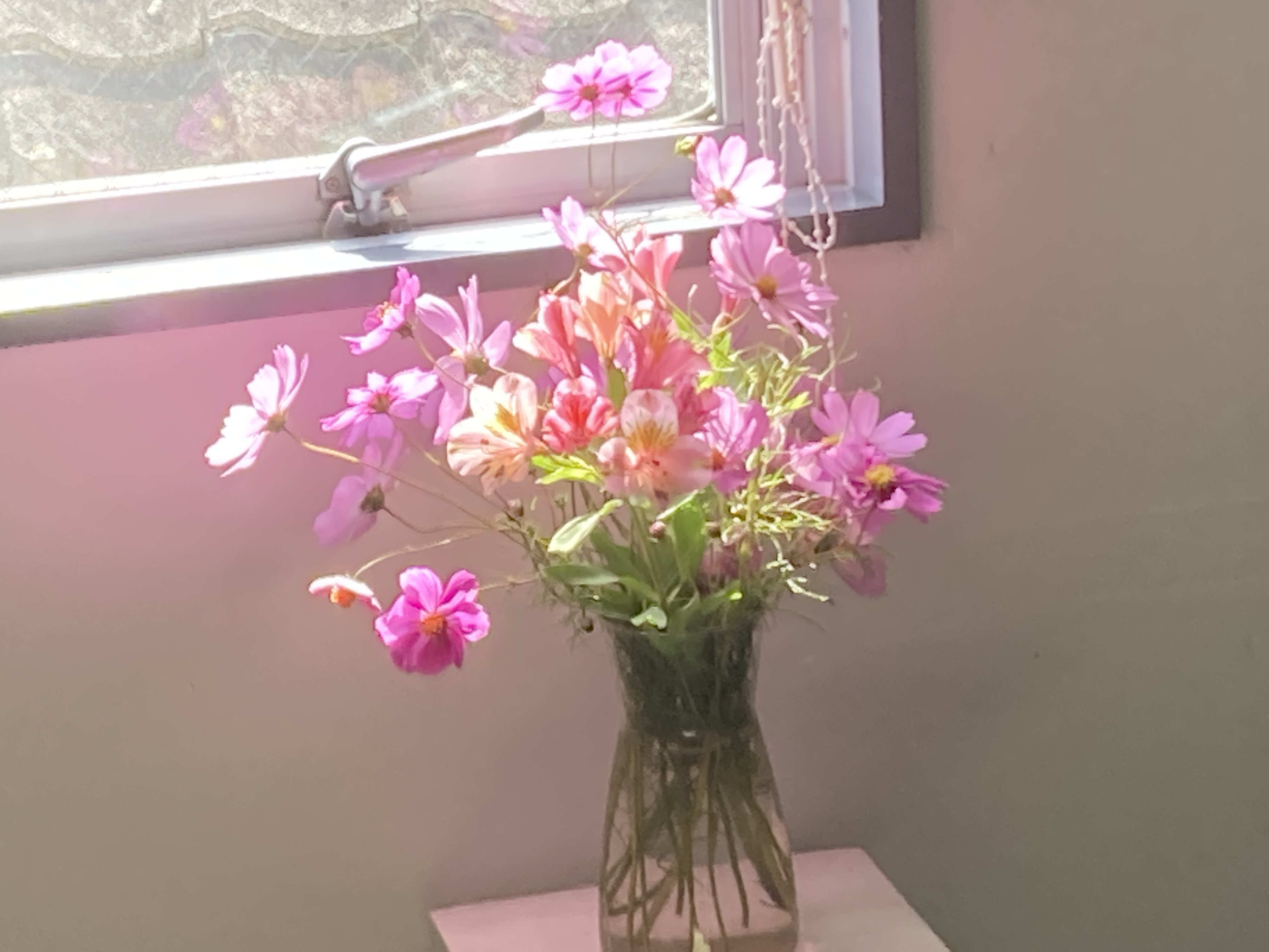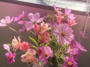 事務所にきたら青空でコスモスが