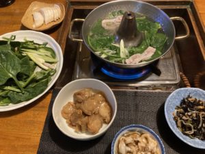 夕食はすぐ食べられるほうれん草しゃぶ。