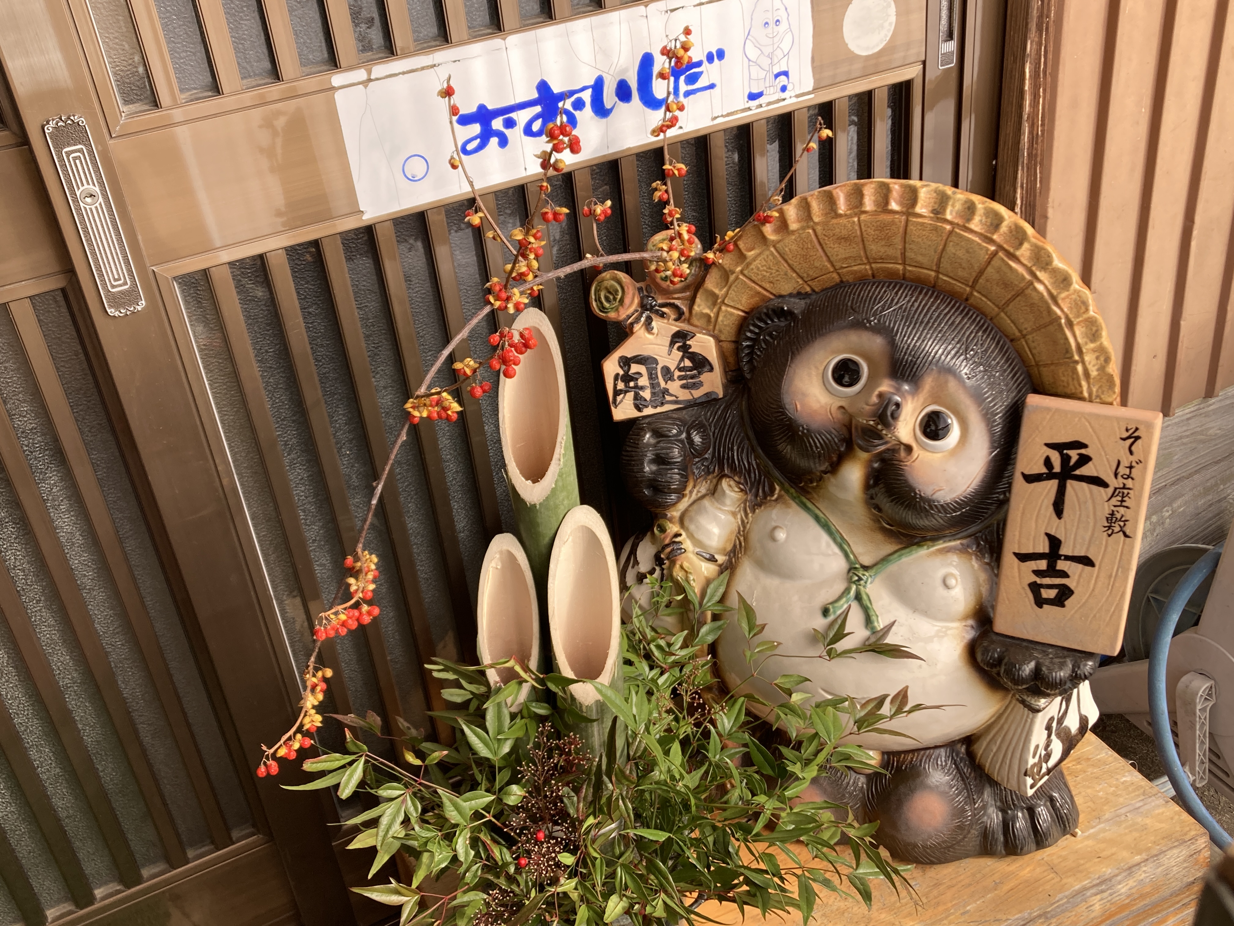 2023年1月16日blogyoko 大石田へ 日曜は大石田へ。 猫がお出迎えです。 混んでいるだろうとお昼前に着くように 出かけたら、先客2組と私たちだけ。 食べ放題のお店も意外と並んでいませんでした。 どちらにしても食べ放題は無理なので、 いつもこのお店で食べます。 天ぷらも揚げたて、蕎麦もいつも通り 美味しいで〜す。