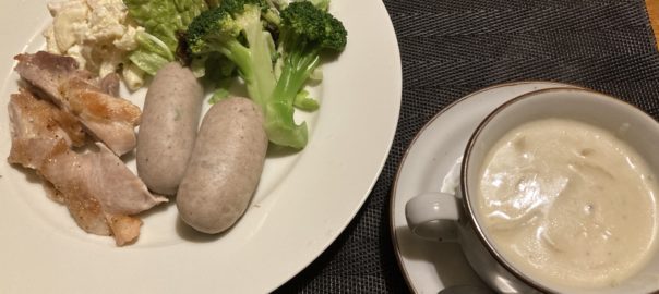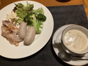 2023年2月14日blogyoko 豆乳 昨夜は相棒とは別行動でジムへ。 トレーニングだけして帰宅です。 鶏肉のパリパリ焼きとソーセージ& 豆乳スープの夕食です。 豆乳スープ、はじめて作りましたが予想外に 美味しいです。 玉ねぎをバターとオリーブ油で炒め塩胡椒 コンソメを入れて豆乳を投入。 ただそれだけなのに。 豆乳の活用、またしてみま〜す。