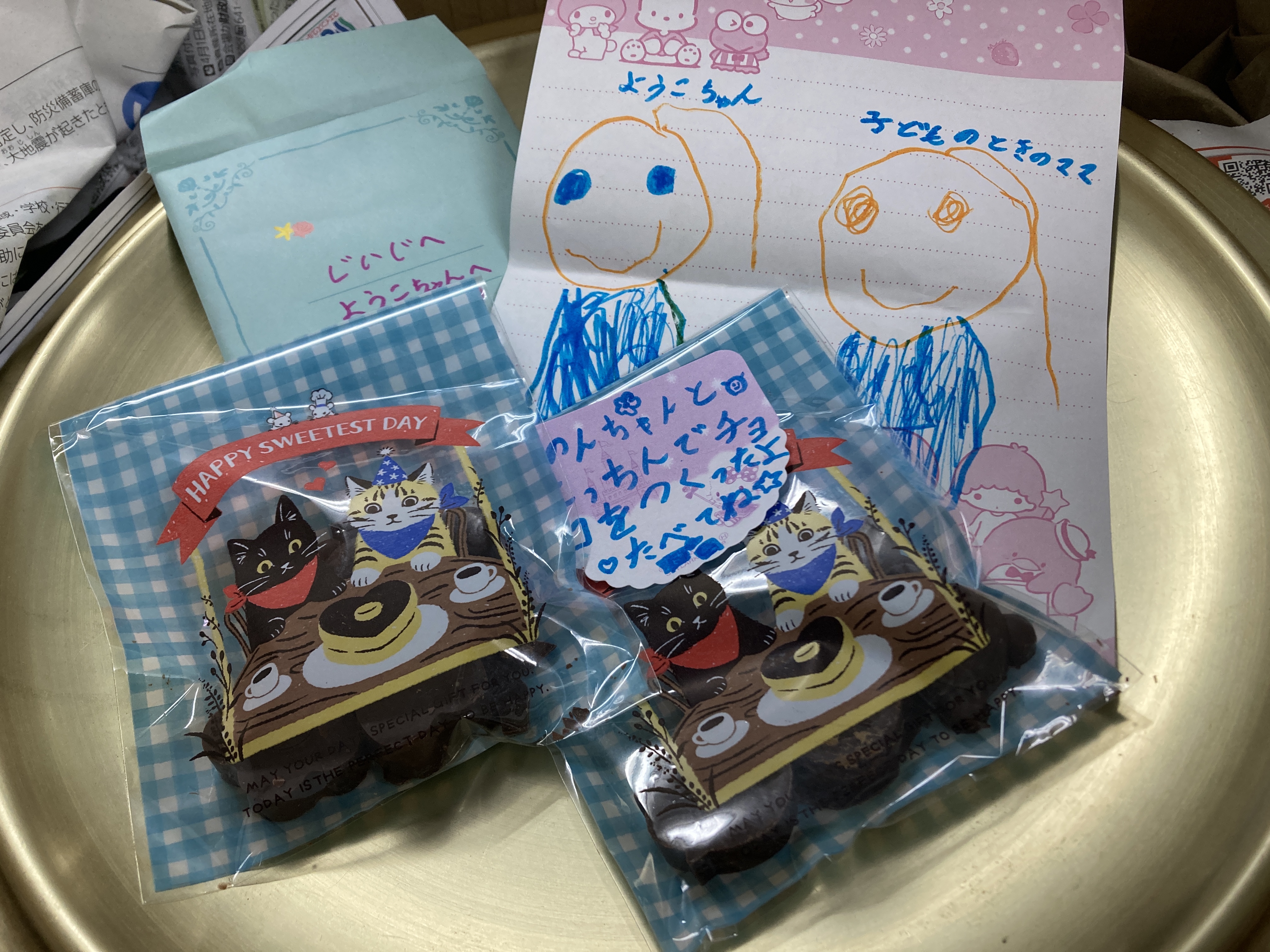 2023年2月14日blogyoko じいじ 大きな段ボールが届きました。 昨年の秋に娘家族とお友達家族で芋煮会を するのに家から大鍋を送りました。 その鍋が不要になったので返却です。 孫ちゃん達が作ったチョコも入っています。 今日はバレンタイン。 その日に合わせてくれたようです。 じいじ、大喜びで〜す。