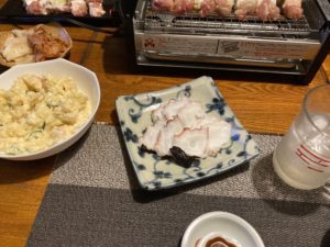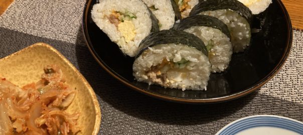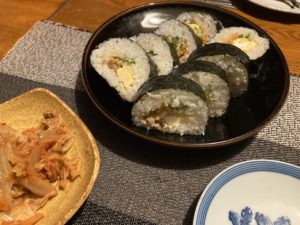 2023年2月6日blogyoko 意味ない 珍しく夕方から二人でジムへ。 1時間程度で帰る予定でしたがシニアは水素が 無料になり、その説明を聞いて早速したら 完全に夜です。 酒のつまみにシシャモとおみ漬けを用意して あとは私が食べたいキンパ。 前日恵方巻食べなかったので、一口だけ 無口で。 でも、相棒から3日でなければ意味な〜いと。