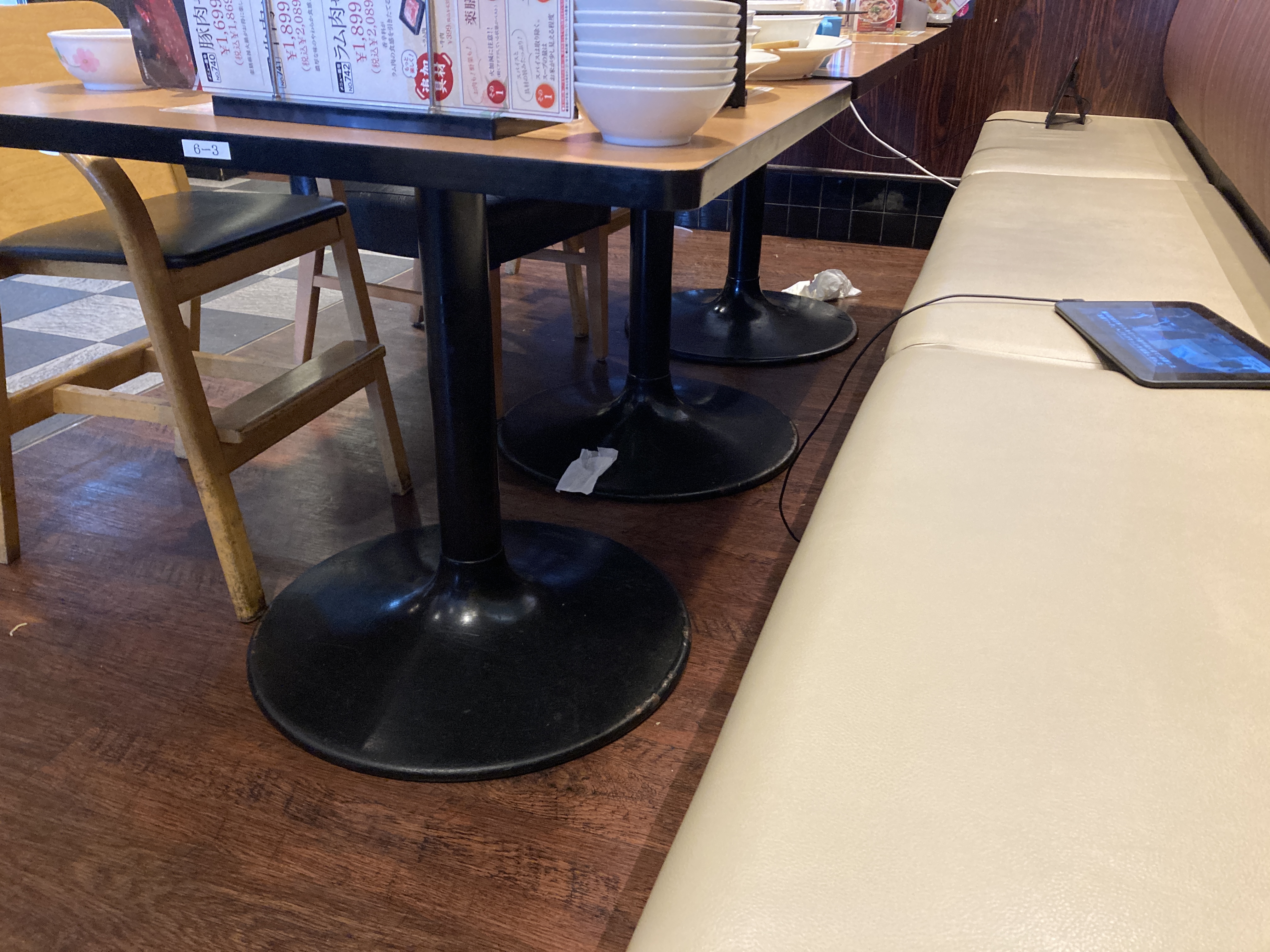 2023年3月27日blogyoko もう少し 今日のランチはここへ。 相棒は坦々麺。 私は日替わりでチキンのチリソースセット メニューと実際の内容の野菜の超少なさに ガッカリです。 ついでに小さなお子さん連れのママ友達の テーブルとテーブルの下が、、、。 もう少し気をつけてほしいですね。