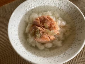 2023年3月27日blogyoko 湯つけ 土曜の朝は昨夜の飲み過ぎで起きてこれず 相棒は鮭の湯つけ。 私はすでに3時間程度動いているので お腹ペコペコですが、ランチの予定が あるので、簡単にで〜す。