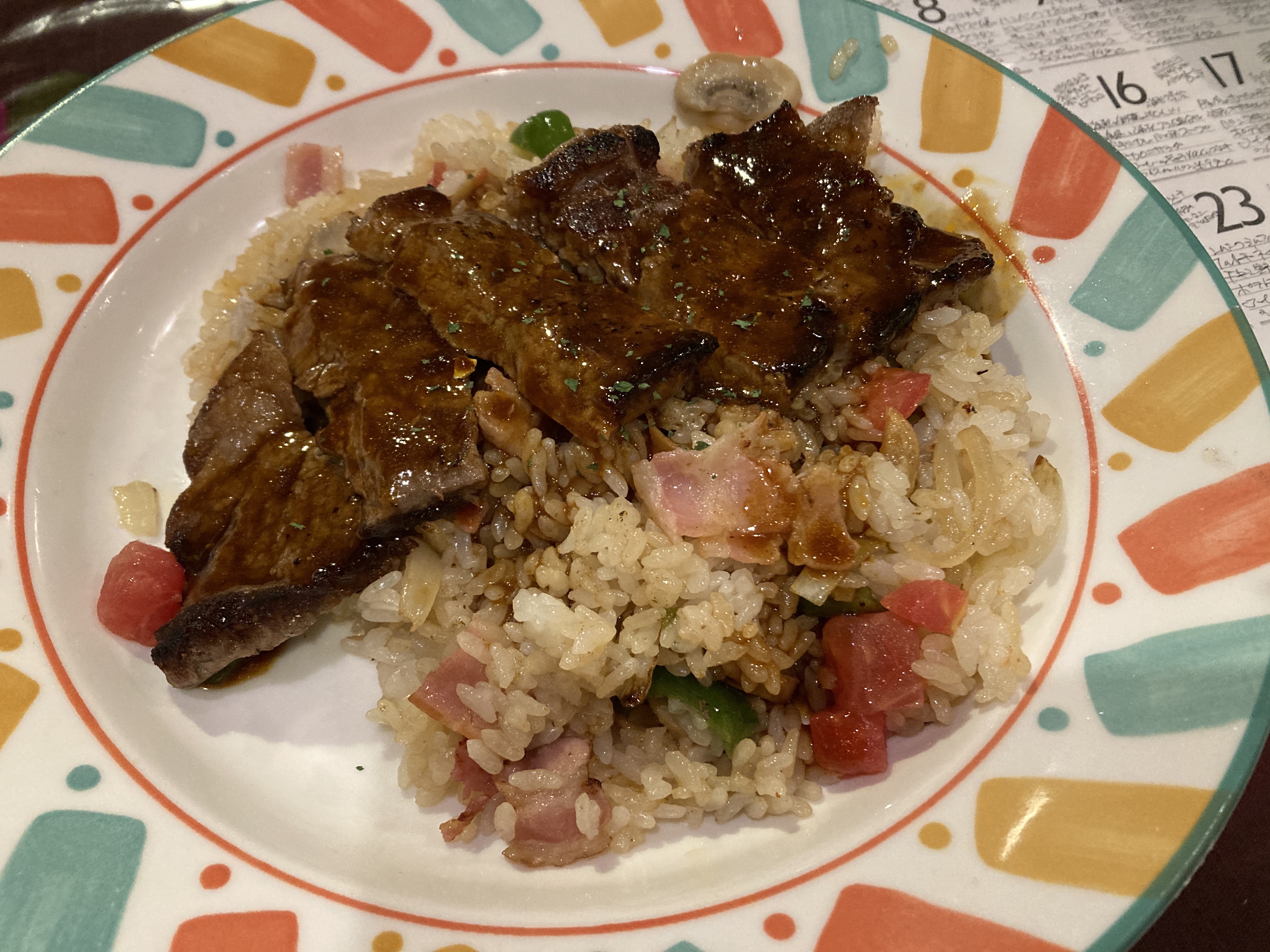 2023年3月27日blogyoko 特別な日 25日は特別な日なのでお昼はお出かけです。 街の洋食屋さんへ。 じゃがいものスープ。 大人のお子様ランチ感いっぱいです。 相棒はステーキピラフ。 私は半分でお腹いっぱいで残りは相棒が 食べるはめに。 やはり、別メニューにすべきと反省で〜す。