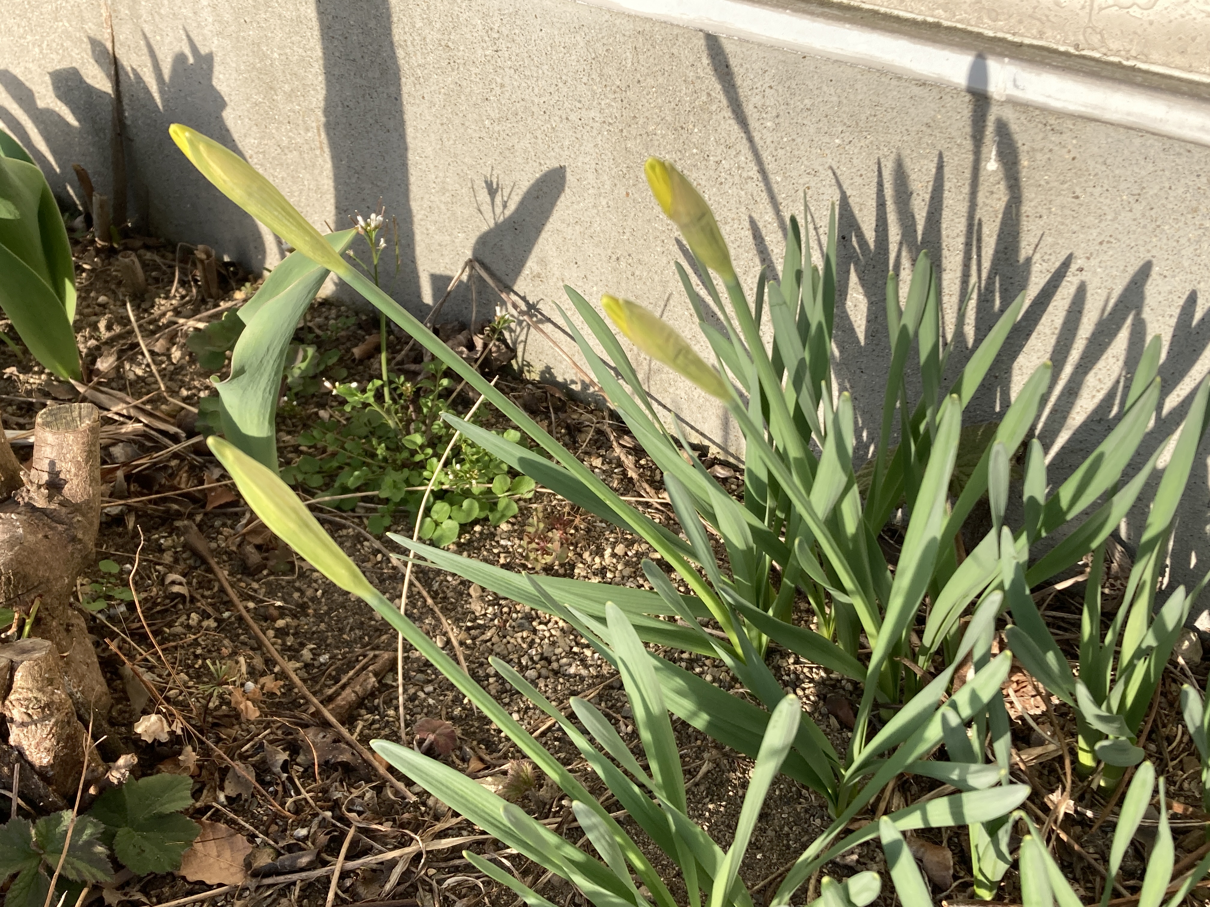 2023年3月23日blogyoko 日課に やっと水仙に花芽がつきました。 昨日今日と気温が高いから間もなく でしょうか。 薔薇もたくさん芽がついています。 これからは小さな庭鑑賞が日課に なりそうで〜す。