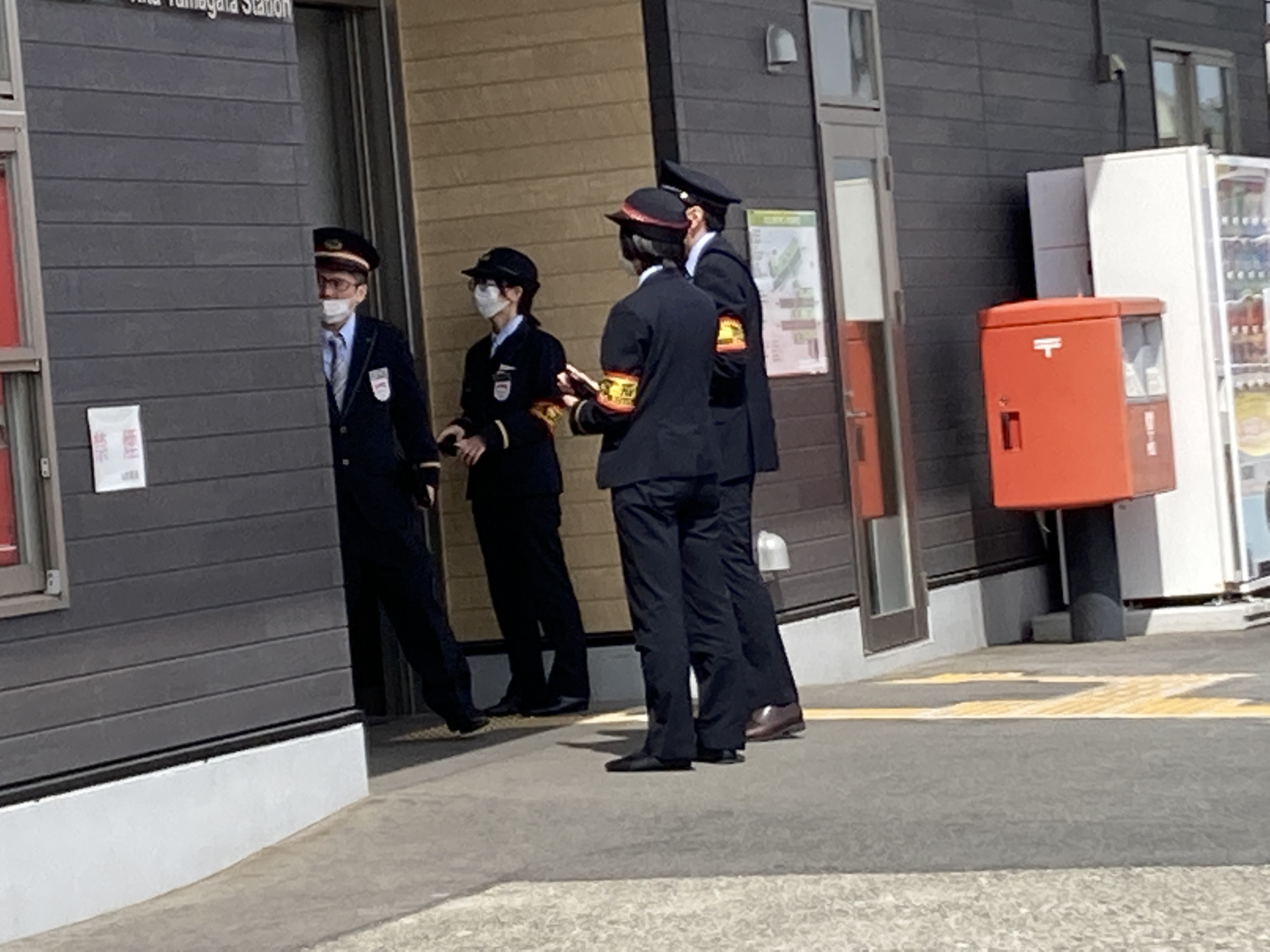2023年3月23日blogyoko どちらにしても 北山形駅まで相棒を送りに行ったら 入り口付近で若い方達がメモを取りながら 聞き入っています。 新人車掌さんでしょうか? それとも警備の方達でしょうか? どちらにしても初々しいで〜す。