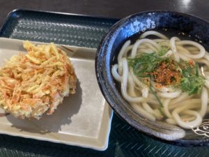 2023年4月24日blogyoko フードコートで 家に戻ってお昼を準備する時間がないので イモテンのフードコートで相棒はザンギ定食。 私は、はなまるうどんのかけとかき揚げ。 急いで山形へ戻りま〜す。