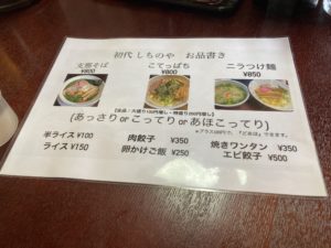 2023年4月24日blogyoko はじめて はじめて入店です。 段ボール製の岡持ちです。 具材がいっぱいの支那そば。 こてっぱち(油そば) 麺を食べ終わるとわかめ入りのスープを 持ってきてくれます。 わかめの量も大中小と選べます。 私たちはすぐに席につけましたが、人気店の ようで食べ終えた時は外で行列で〜す。