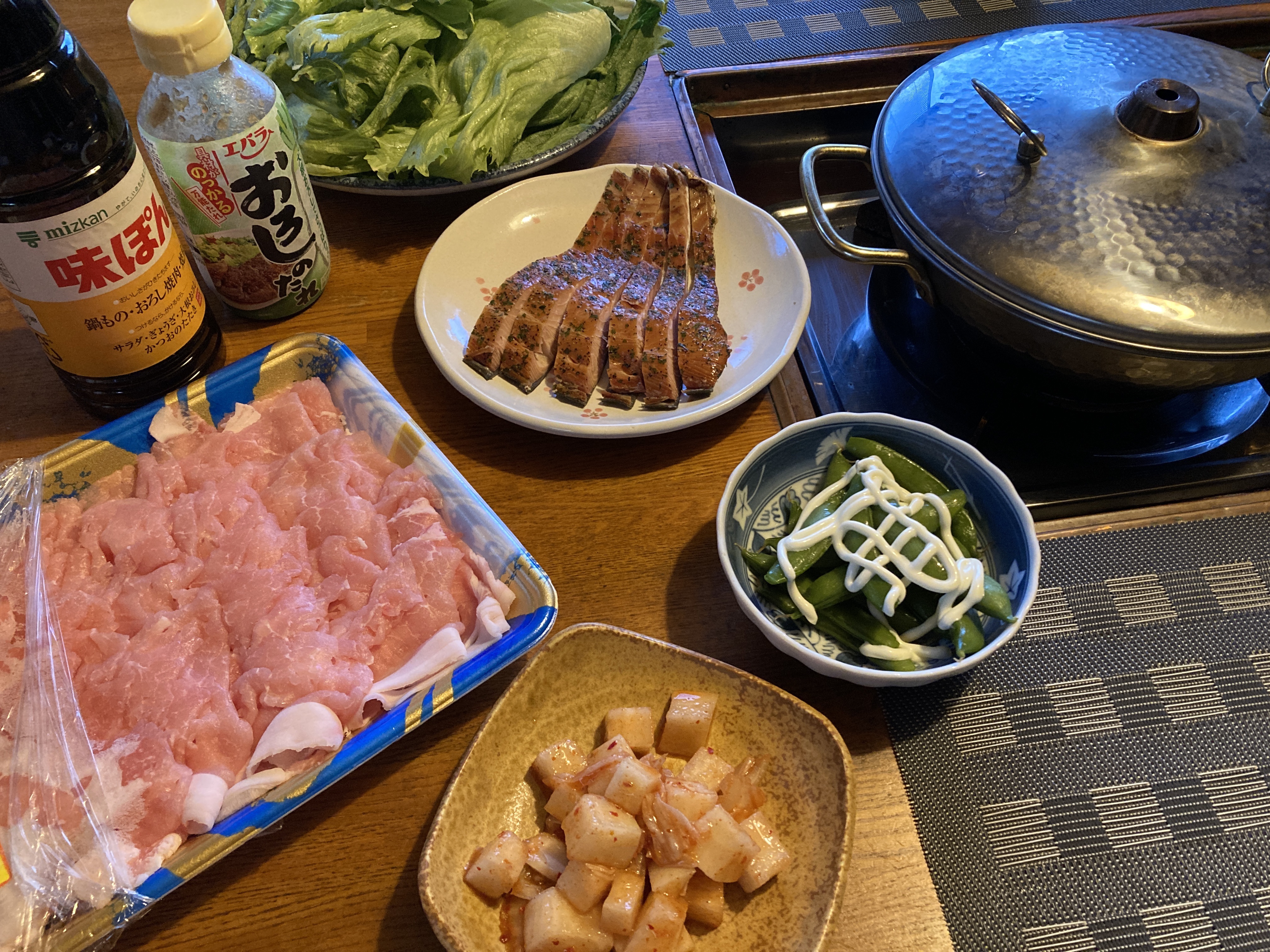 2023年6月20日blogyoko レタスが 相棒が明朝早く出張に出るので昨夜は7時には 夕食です。 今は煮物とかは危ないので、すぐに食べられる 物が優先です。 レタスがたくさんあるのでレタスしゃぶで〜す。