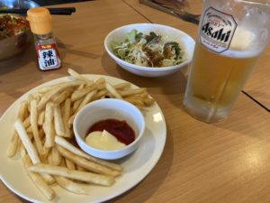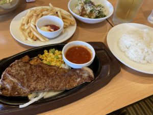 2023年6月19日blogyoko 父の日 少し遅いお昼はここへ。 前回食べた時美味しかったので同じメニューの 私です。 そして父の日なのでアルコール付きのステーキ メニューが相棒。 相棒の車できたのでビールは私が飲みました。 お昼のビール最高で〜す。