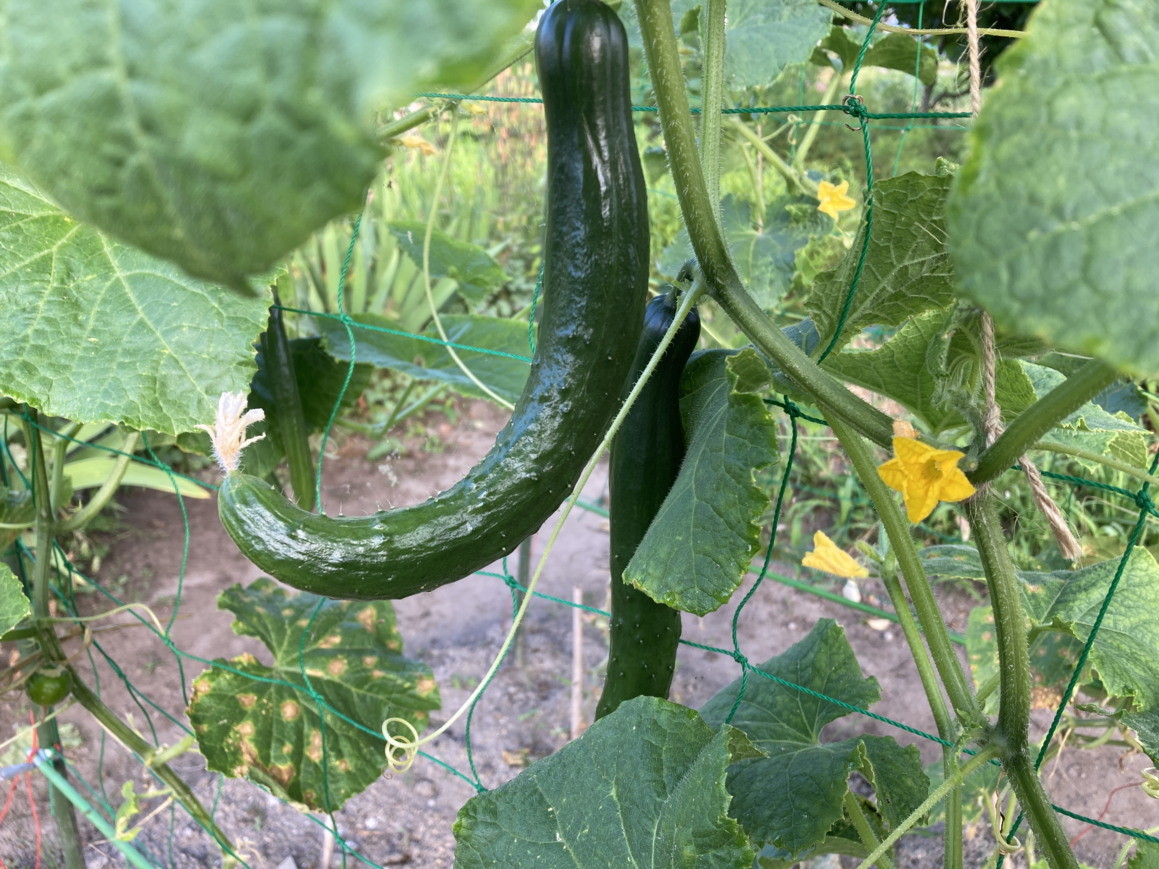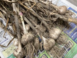 2023年6月26日blogyoko 一番の作業は 朝食を済ませてから二人で畑へ。 相棒は通路、私は花畑の中の雑草取りです。 完全には終わらないけど、お昼近くまで すると暑さで疲労が出てくるので終了です。 その後は茄子やきゅうりを数本収穫。 ミニトマトもやっと色ついてきました。 そして、一番の作業はニンニク掘りで〜す。