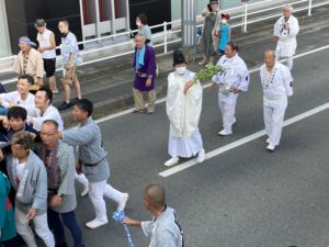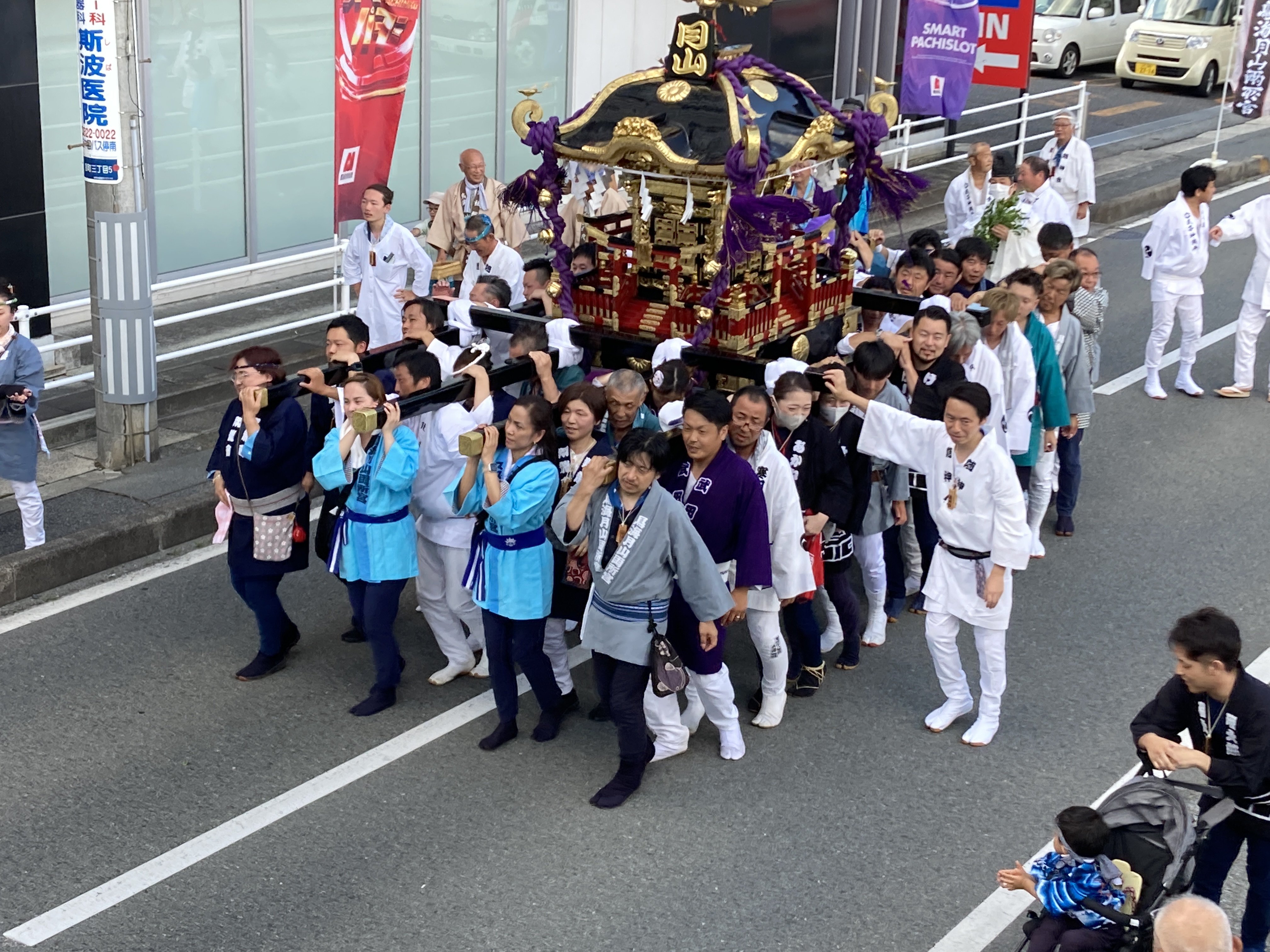 2023年8月2日blogyoko 山形市長発見 夕方4時頃に和太鼓の音が聞こえてきました。 事務所の下でスタッフやスタッフの子供が 見学です。 コロナで3年中止し4年ぶりの開催なので、 とにかく仕事どころでありません いよいよ御神輿を担いで町内をまわります。 山形市長発見!右端の白い法被の方です。 知らない中でないので市長の目線は相棒へ。 宮司さんも神輿と一緒にお祓いで〜す。
