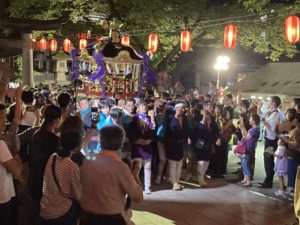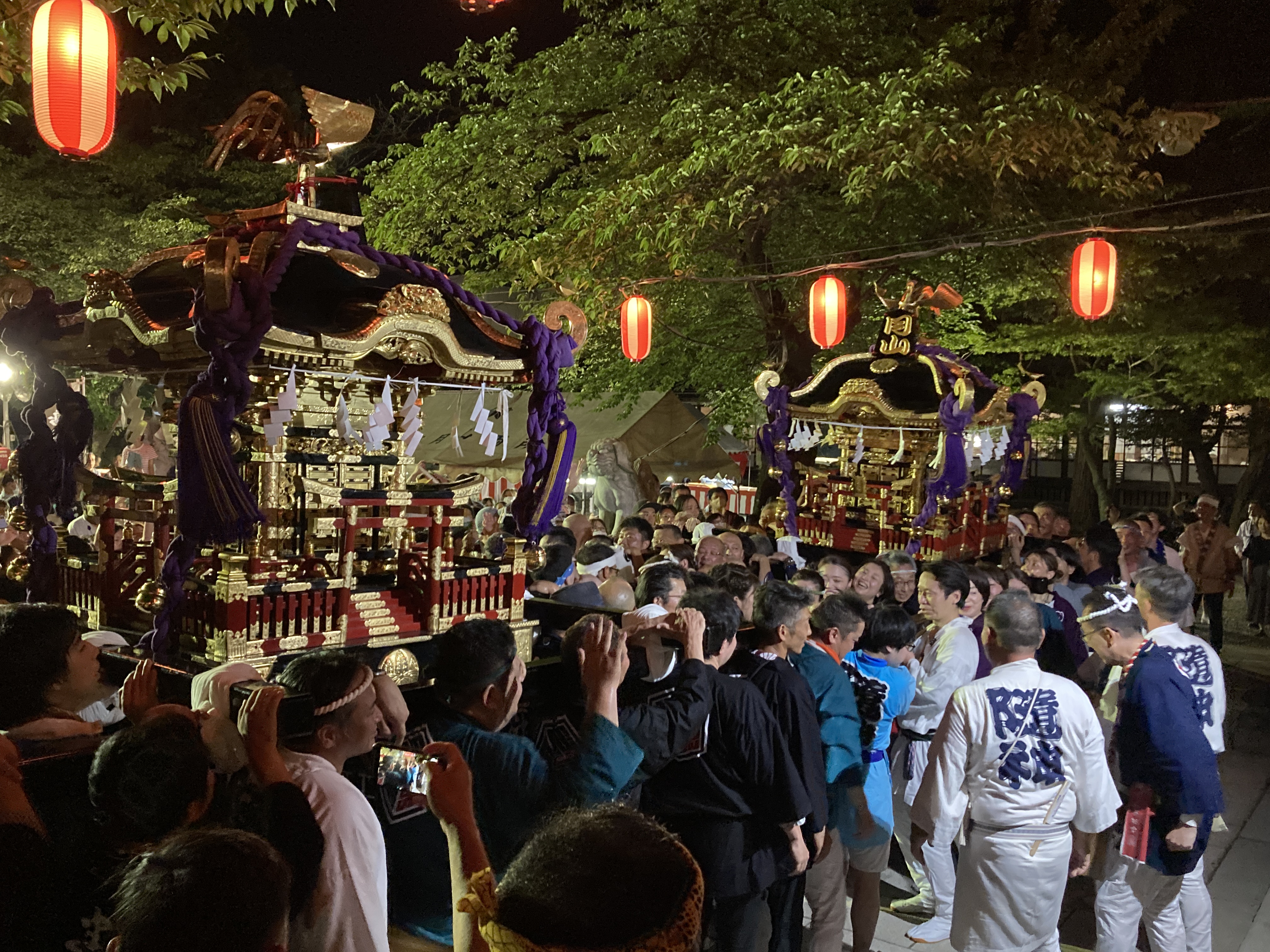 2023年8月2日blogyoko 例大祭 御神輿が事務所の前から出て戻るのが夜の 8時過ぎ予定なので、その前にノンアルコールで 事務所内でお祭りなのでと乾杯です。 戻ってきました。 境内へ入ってきました。 月山と鳥海山の神輿が揃いました。 とにかく、すごい迫力です。 その後、神事が行われ終了ですが、例大祭に かける担ぎ手の方達に感謝で〜す。